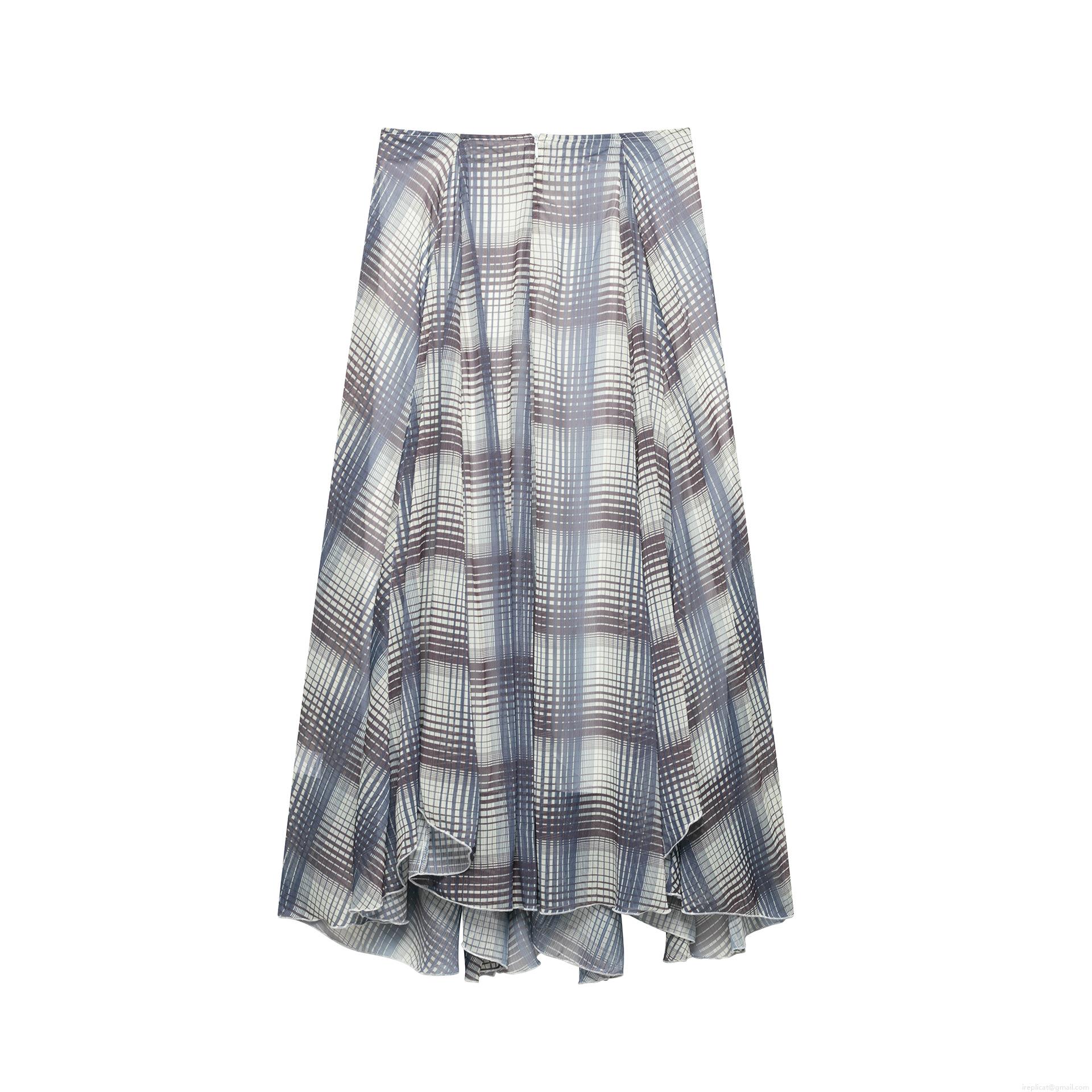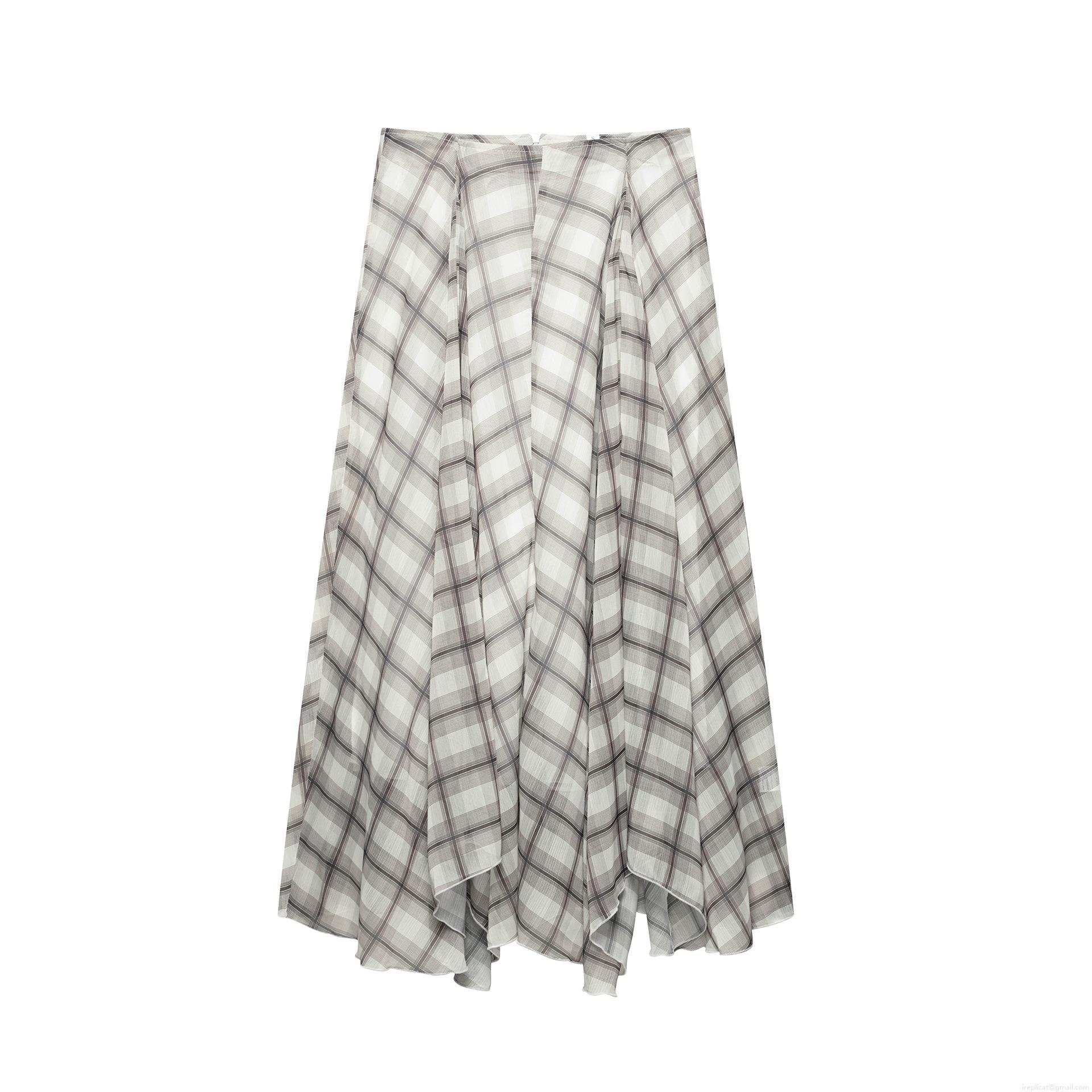 Snake Pattern, Checkered Pattern, Printing, Irregular Hem, High-waisted