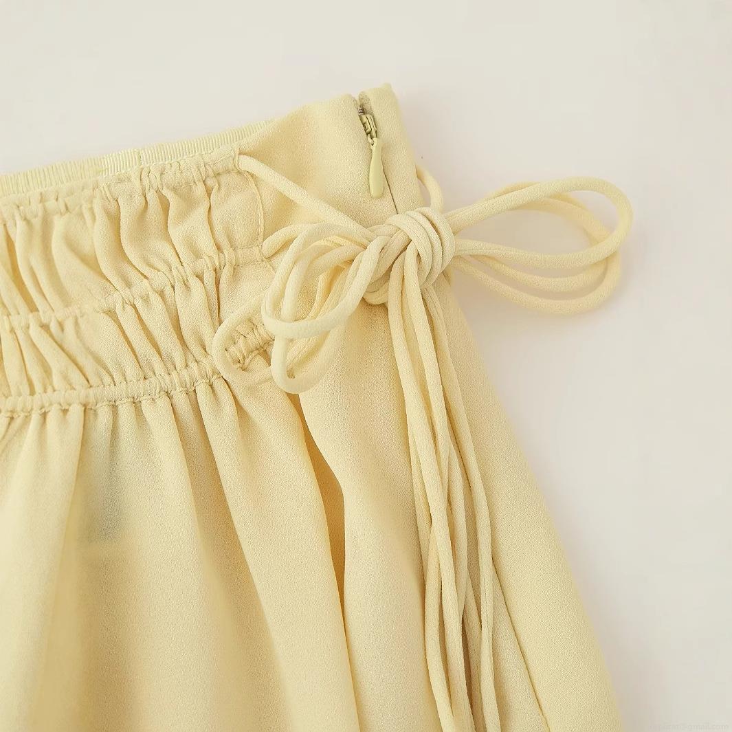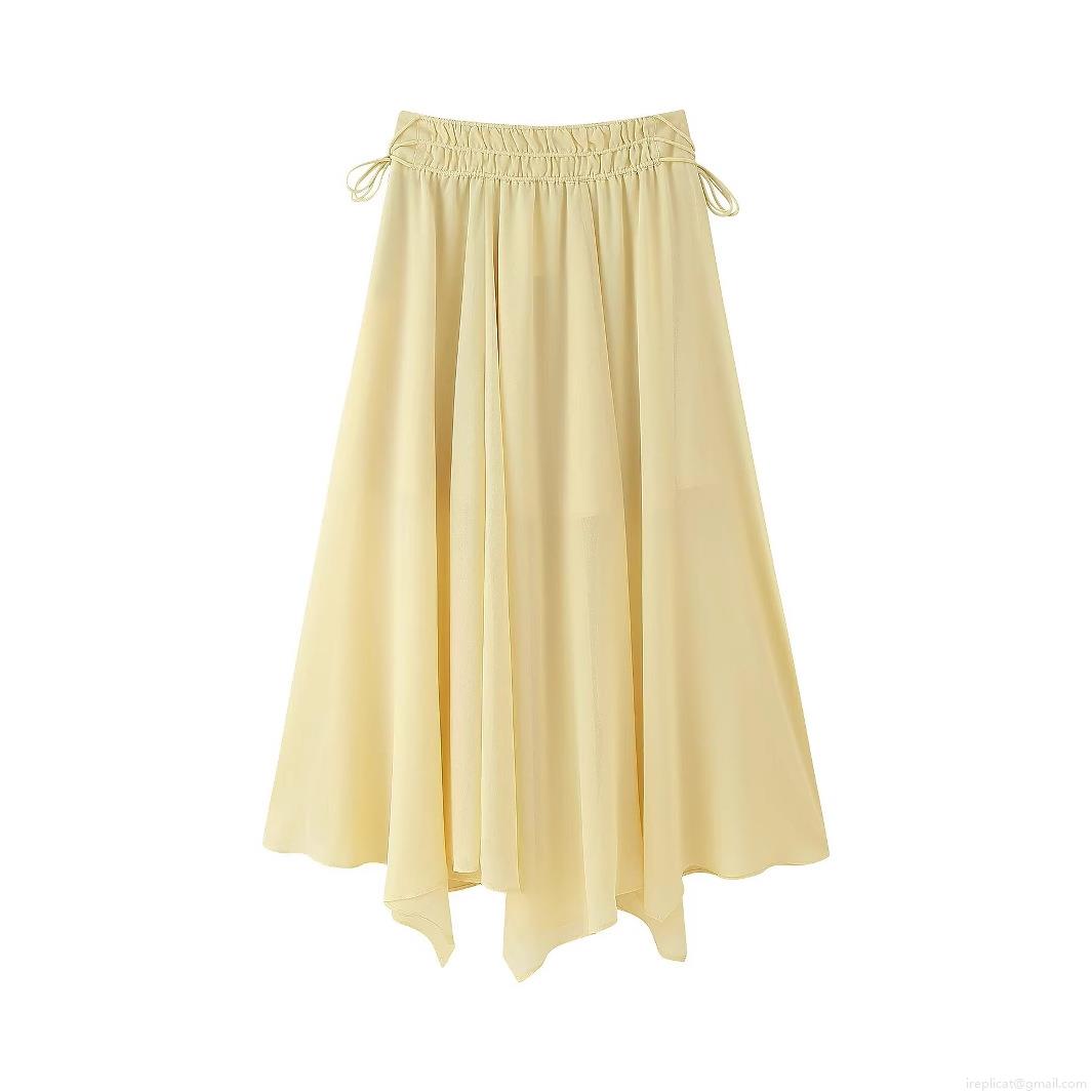 Solid Color, Irregular Hem, Side Drawstring, Waist Pleats, Bundling Process