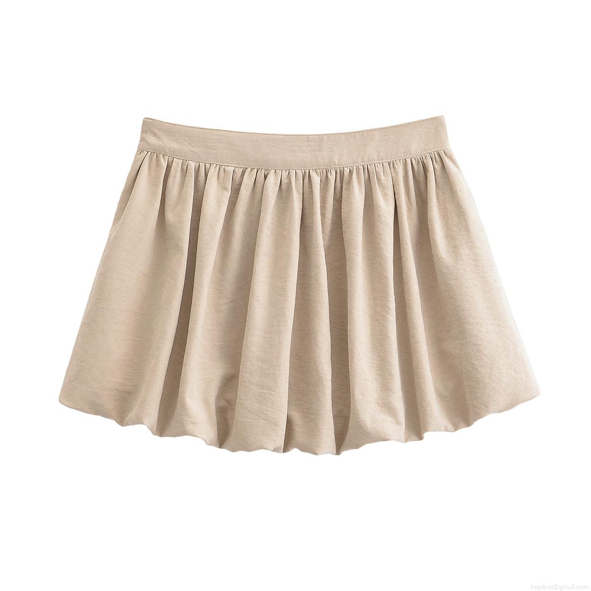 • Women's High Waist Mini Bubble Skirt 100% Polyester Solid Color A-Line Puffy Hem Short Skirt Streetwear Casual Western Style Skirt