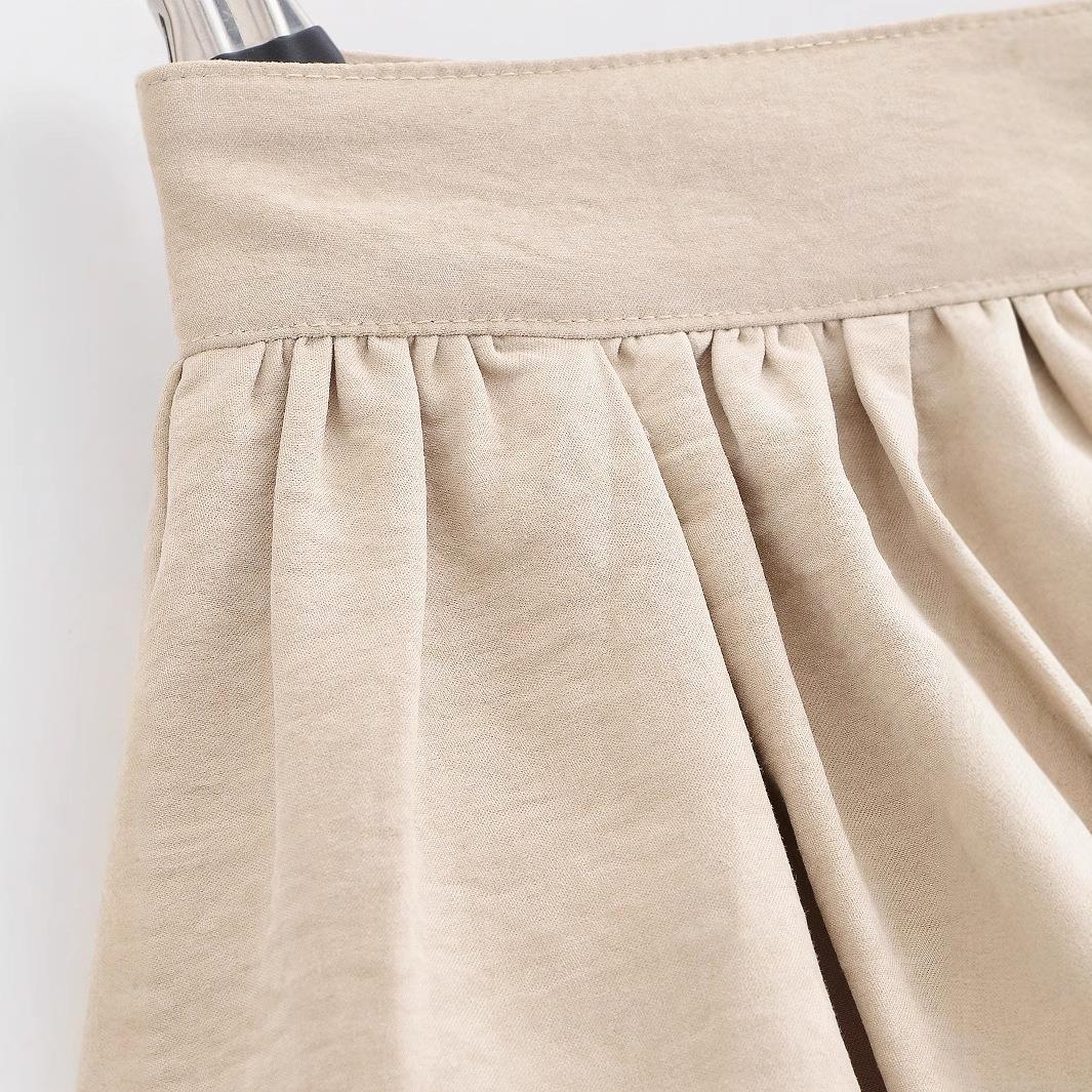 Solid Color, Invisible Zipper, High-waisted Pleats, Bubble Hem