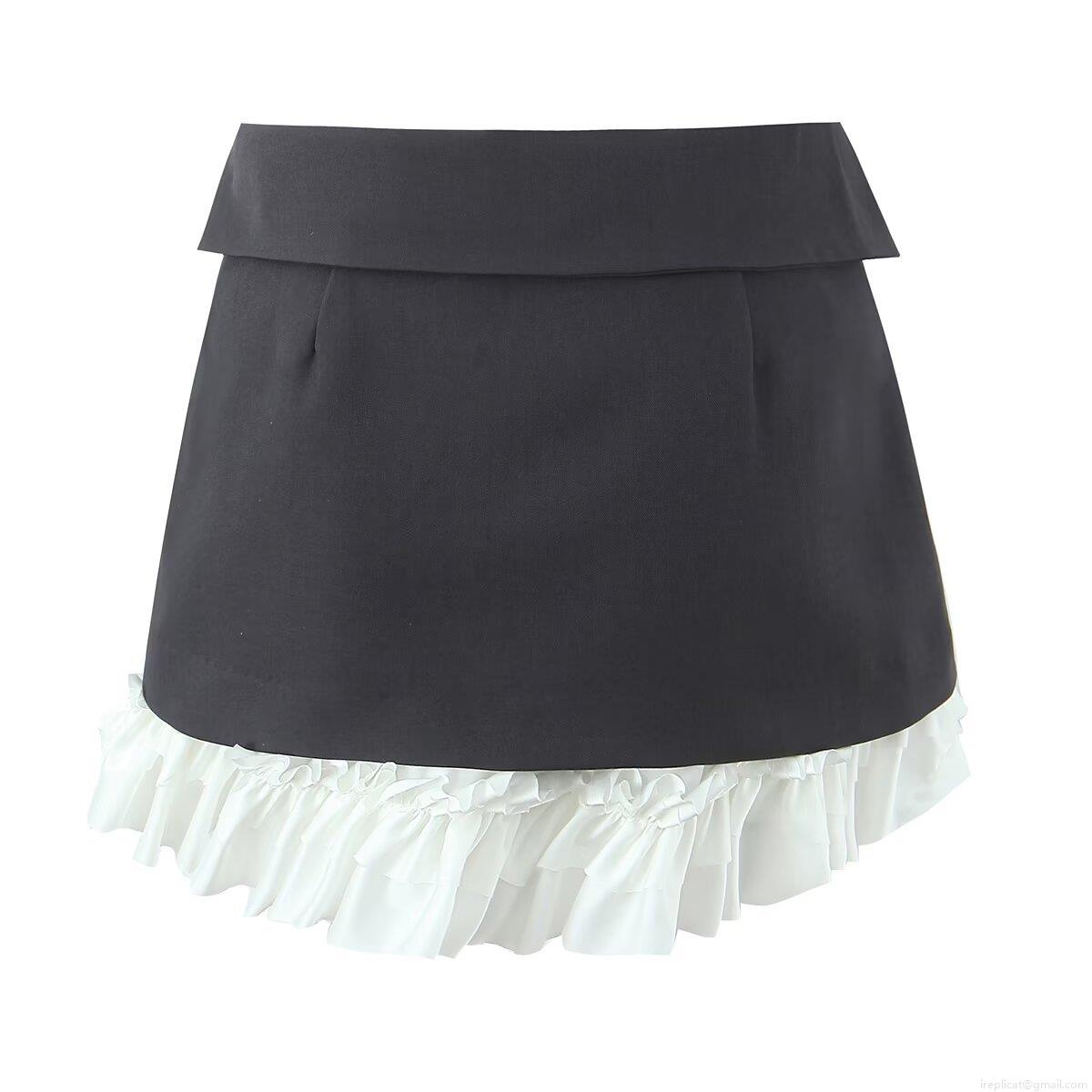 • Women's High Waist Mini Skirt Contrast Color Ruffled Hem Sexy Bodycon Skirt Polyester Spandex Short Skirt for Party Streetwear Daily Women Fashion