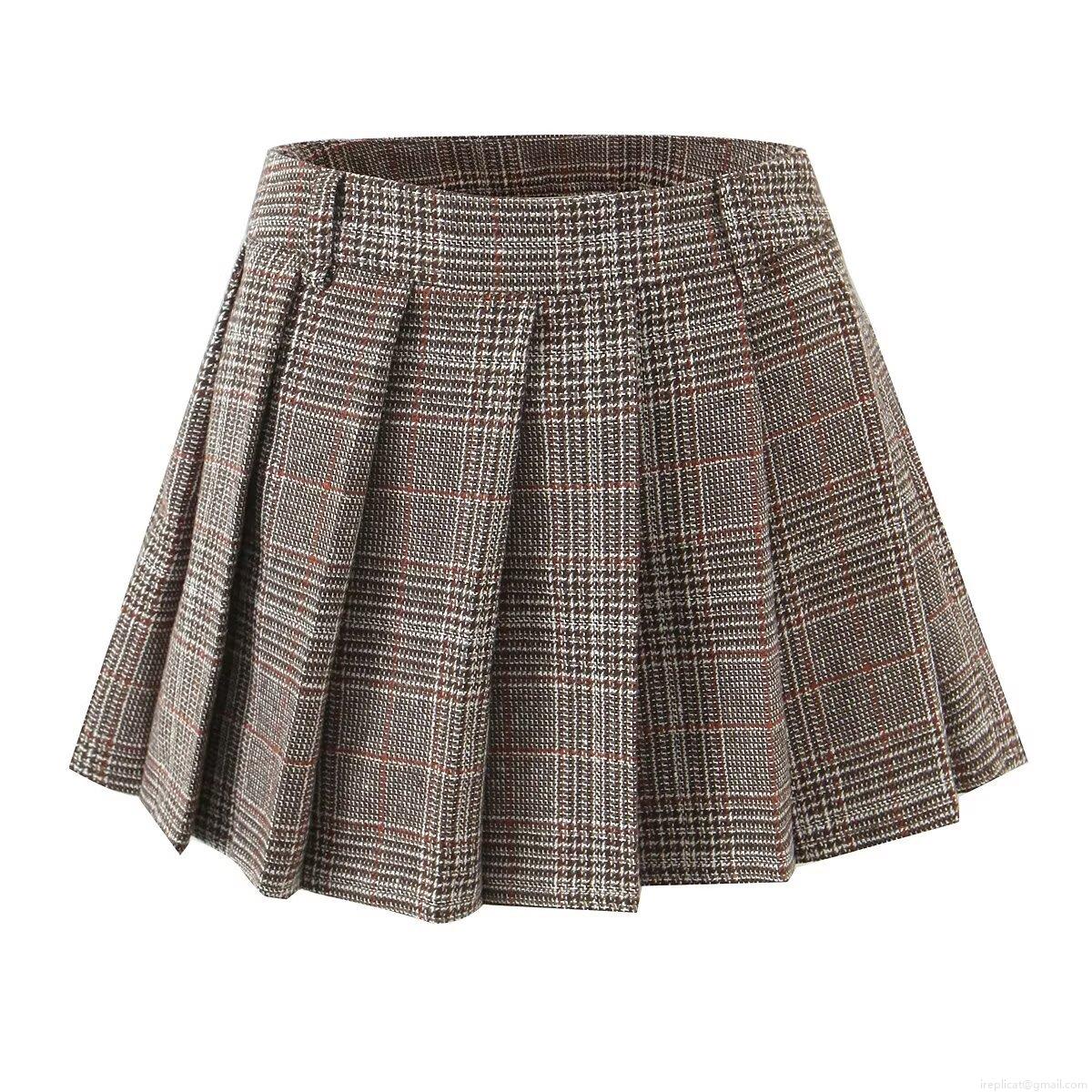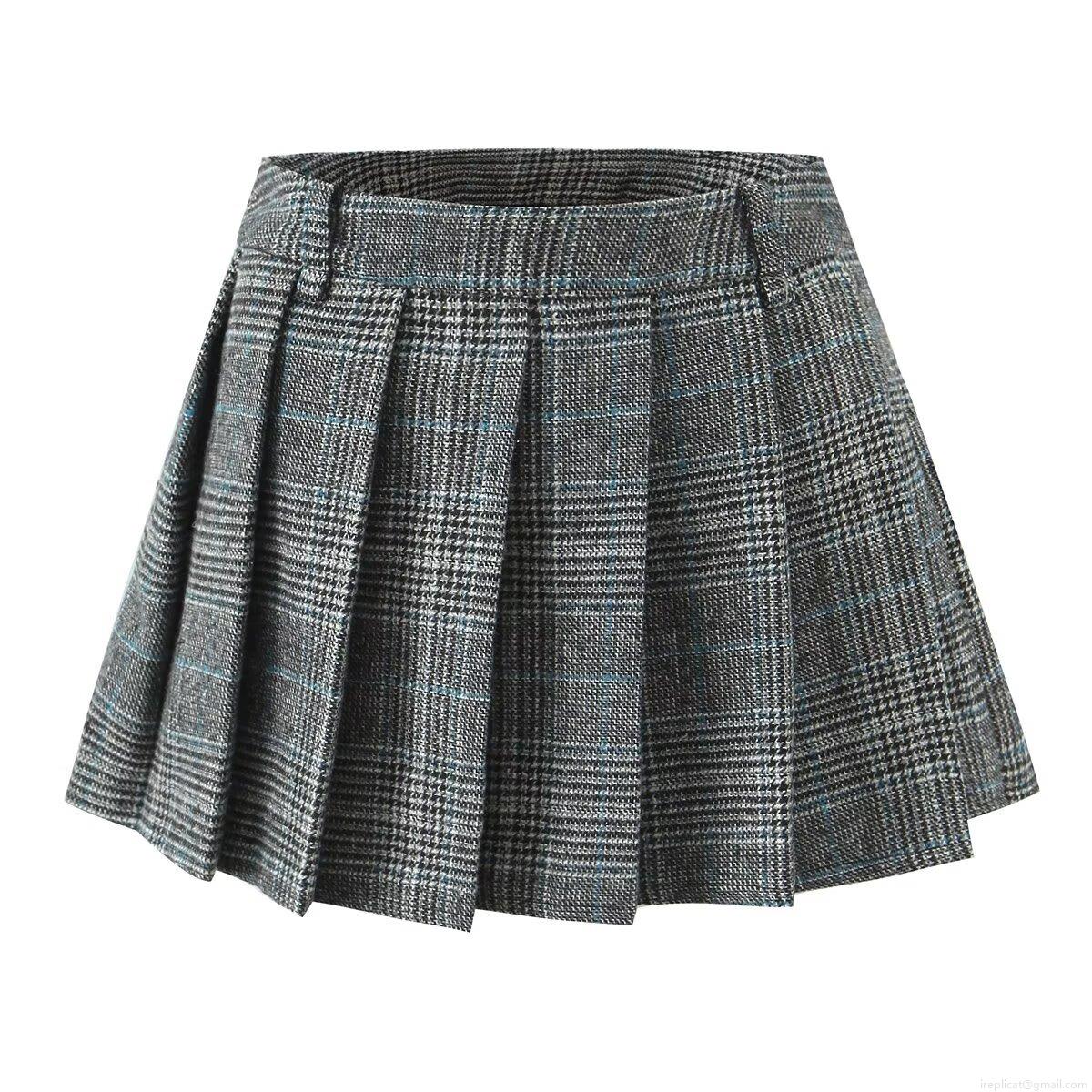 • Women's High Waist Plaid Pleated Mini Skirt 100% Polyester Preppy Style School Uniform A-Line Short Skirt Streetwear Fashion Khaki Gray Skirts
