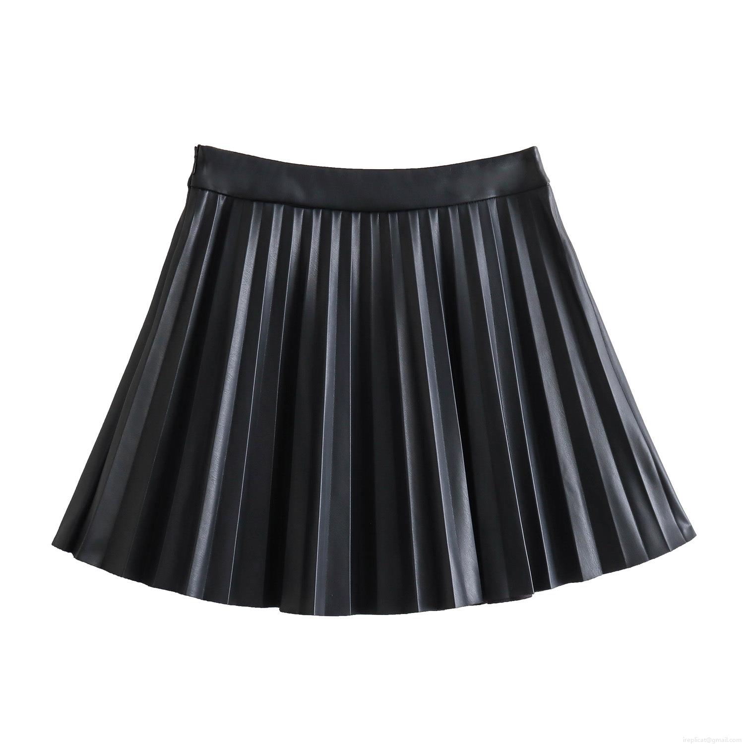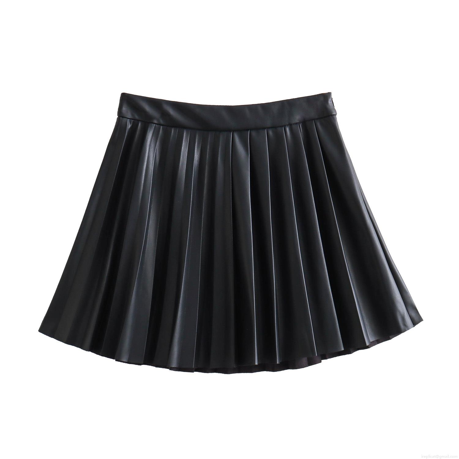• Women's High Waist Pleated Faux Leather Mini Skirt Sexy A-Line PU Short Skirt Solid Color Preppy Style Streetwear Sexy Hot Girl Skirt For Women
