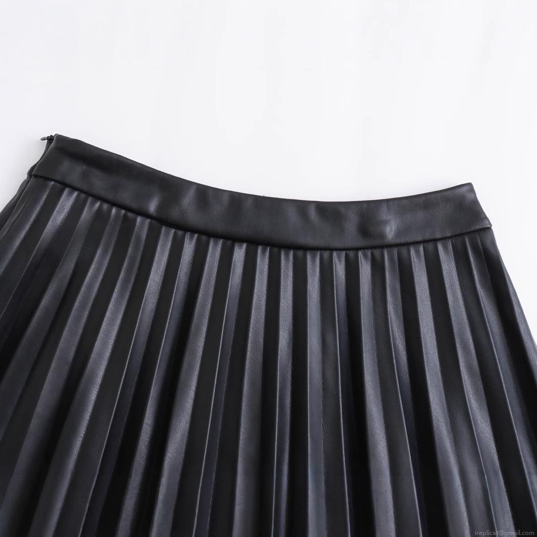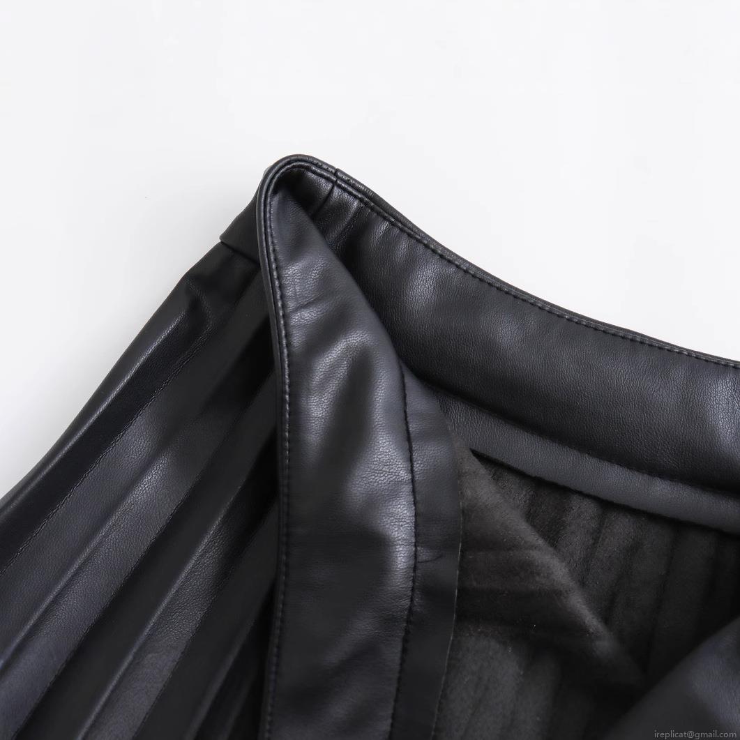 Solid Color, High-waisted, Leather Texture, Pleated Design