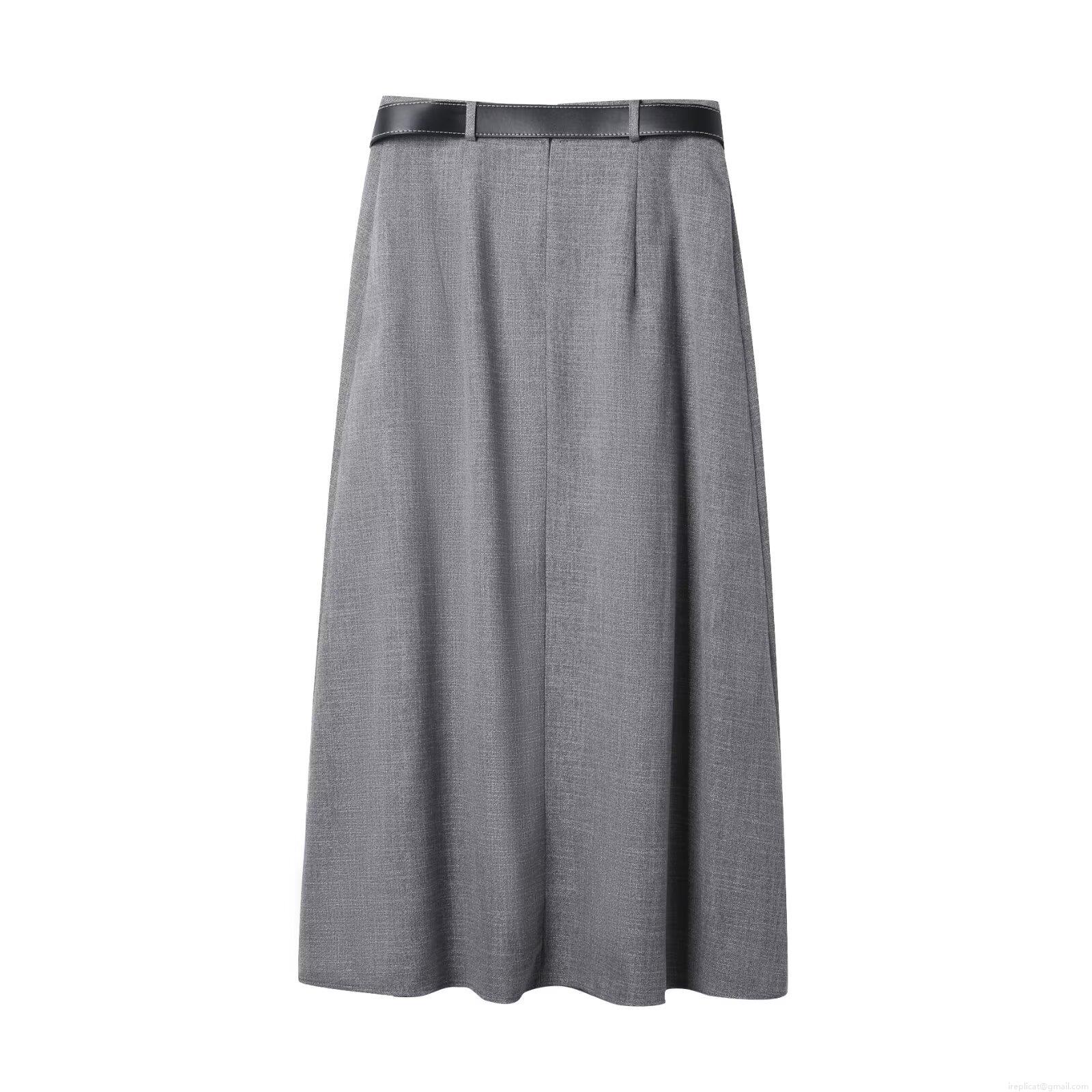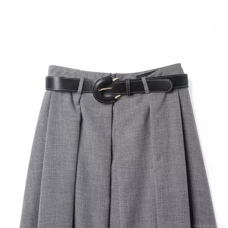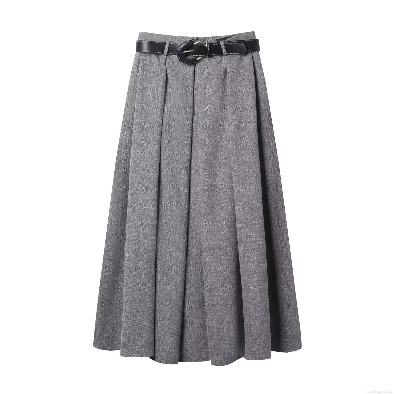 • Women's High Waist Pleated Midi Skirt With Belt Elegant Solid Color A-Line Skirt Polyester Streetwear Autumn Fashion Office Lady Casual Dress