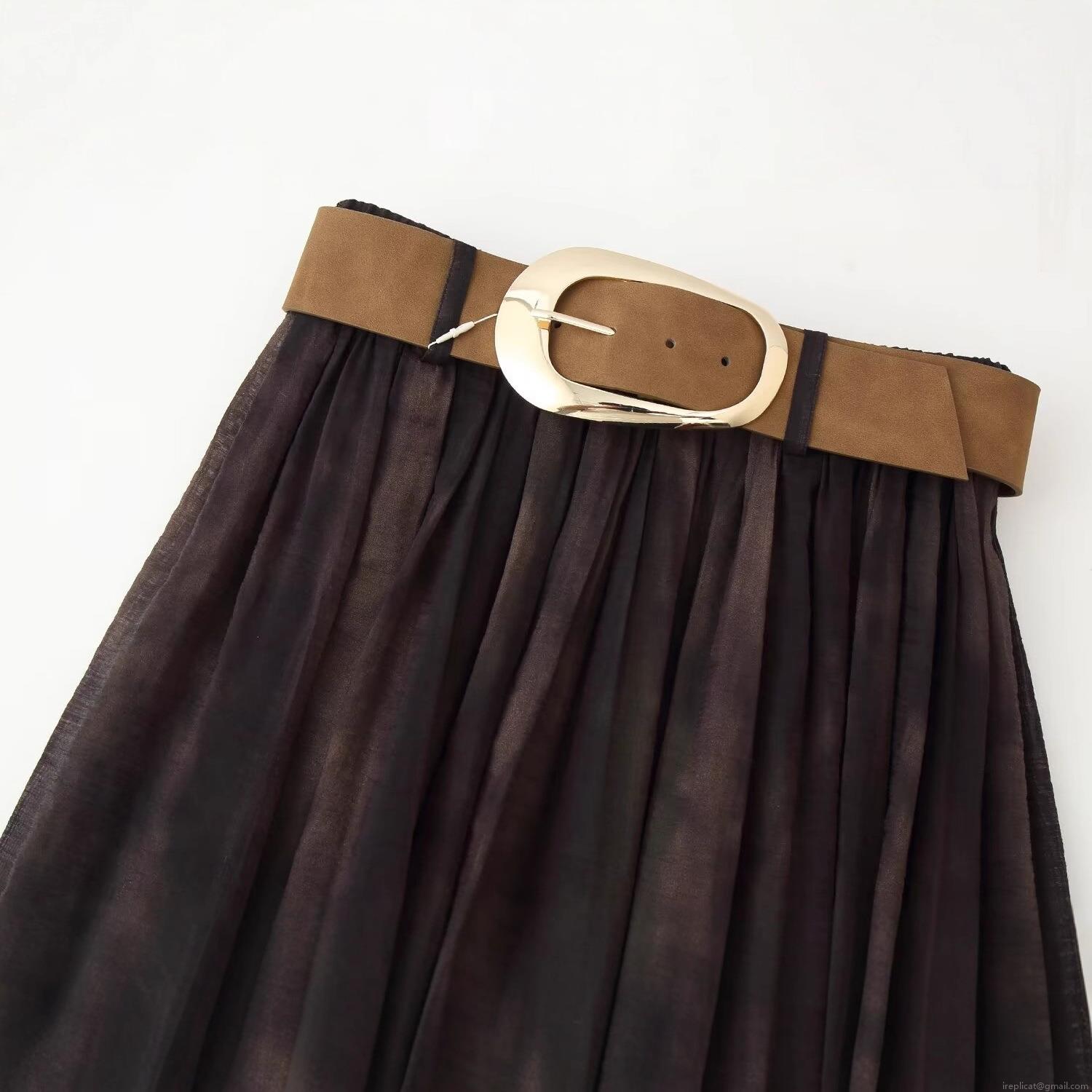 Pleats, Gradient, Belt Decoration, Metal Buckle, Blur Print