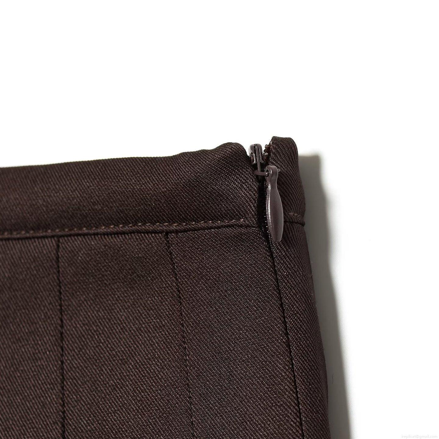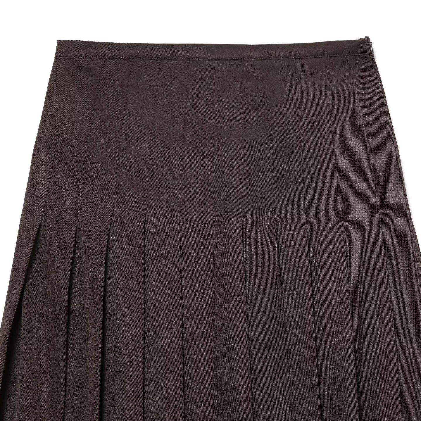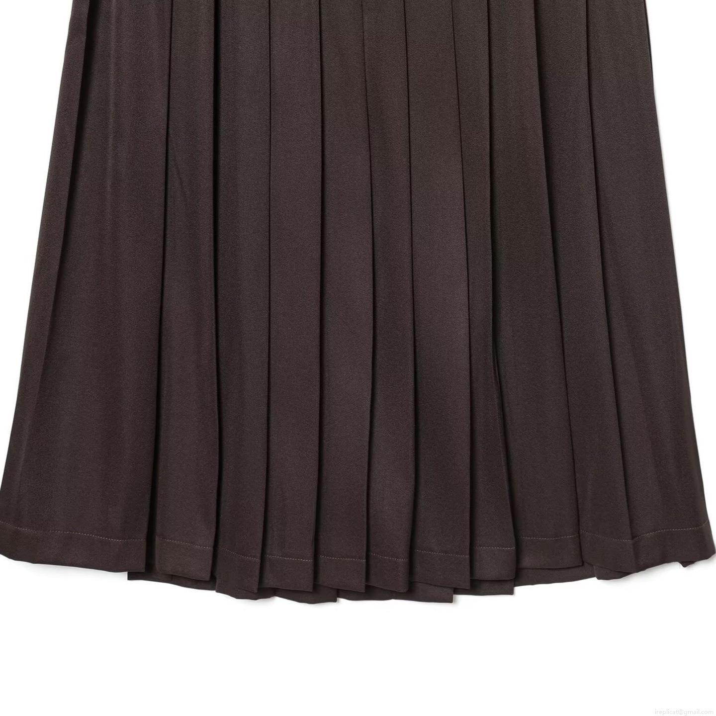 • Women's High Waist Pleated Mid-length A-line Skirt Solid Color Chocolate Brown Preppy Style Polyester Long Skirt For Winter Daily Wear