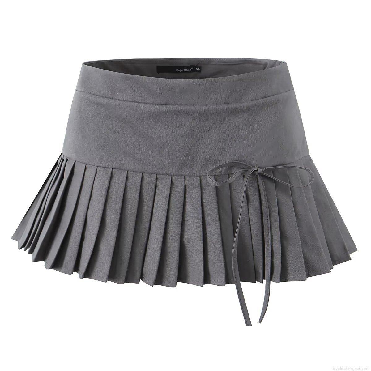 • Women's High Waist Pleated Mini Skirt With Bow Tie Cotton Blend A-Line Short Skirt Streetwear Casual Skirts For Women