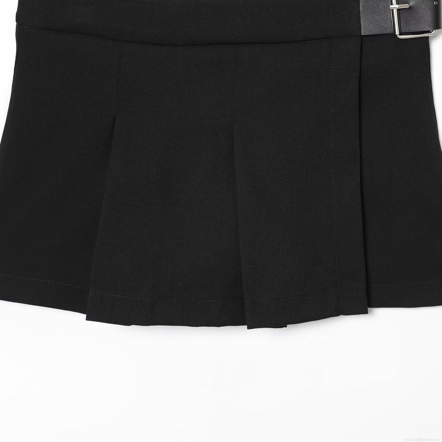 • Women's High Waist Pleated Mini Skirt With Leather Buckle Detail Fashion Solid Color Polyester Streetwear Sexy A-Line Skort For Ladies