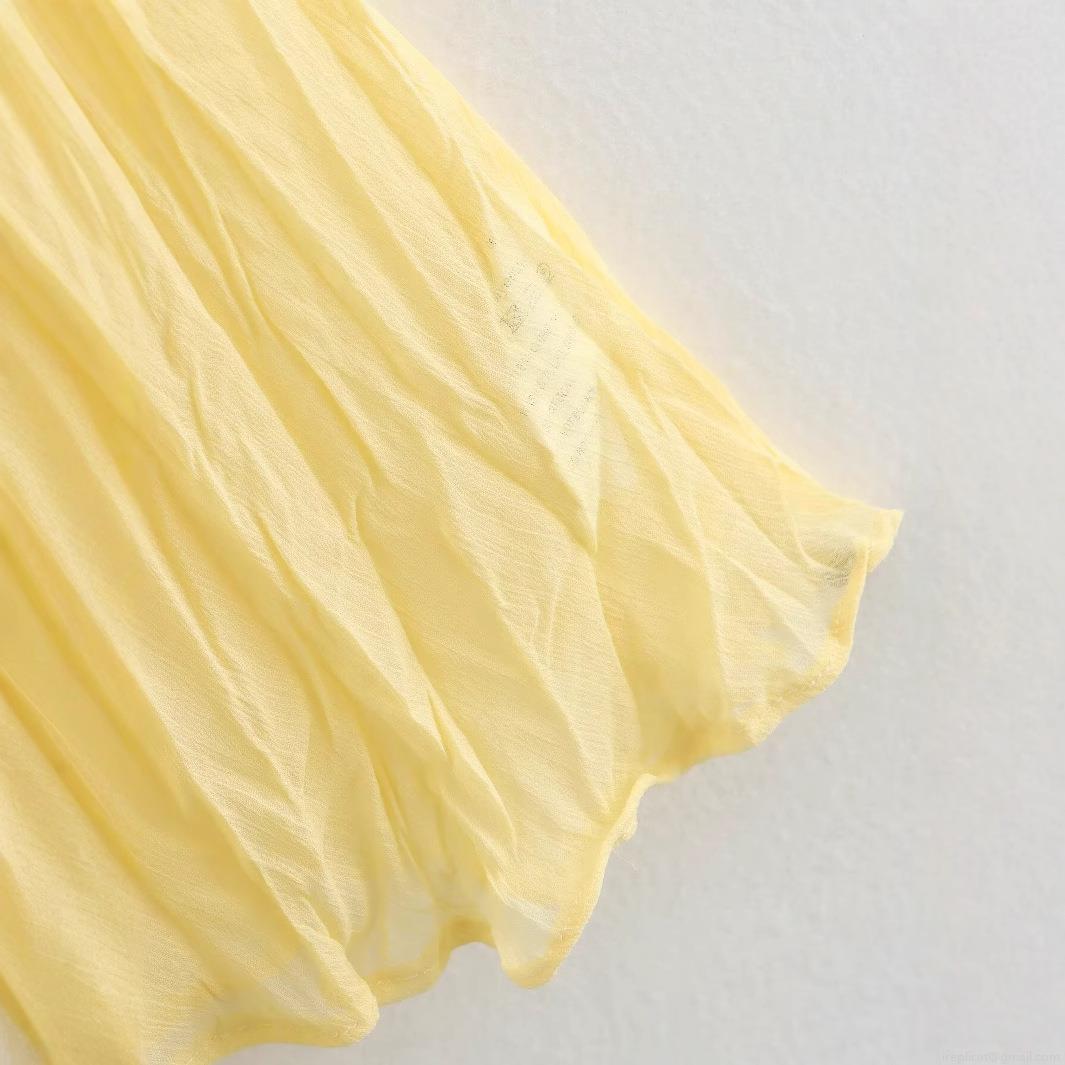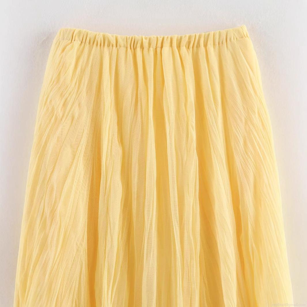 • Women's High Waist Pleated Skirt 100% Polyester Yellow A-Line Maxi Skirt Lightweight Breathable Long Skirt For Casual Summer Dating Fashion Streetwear