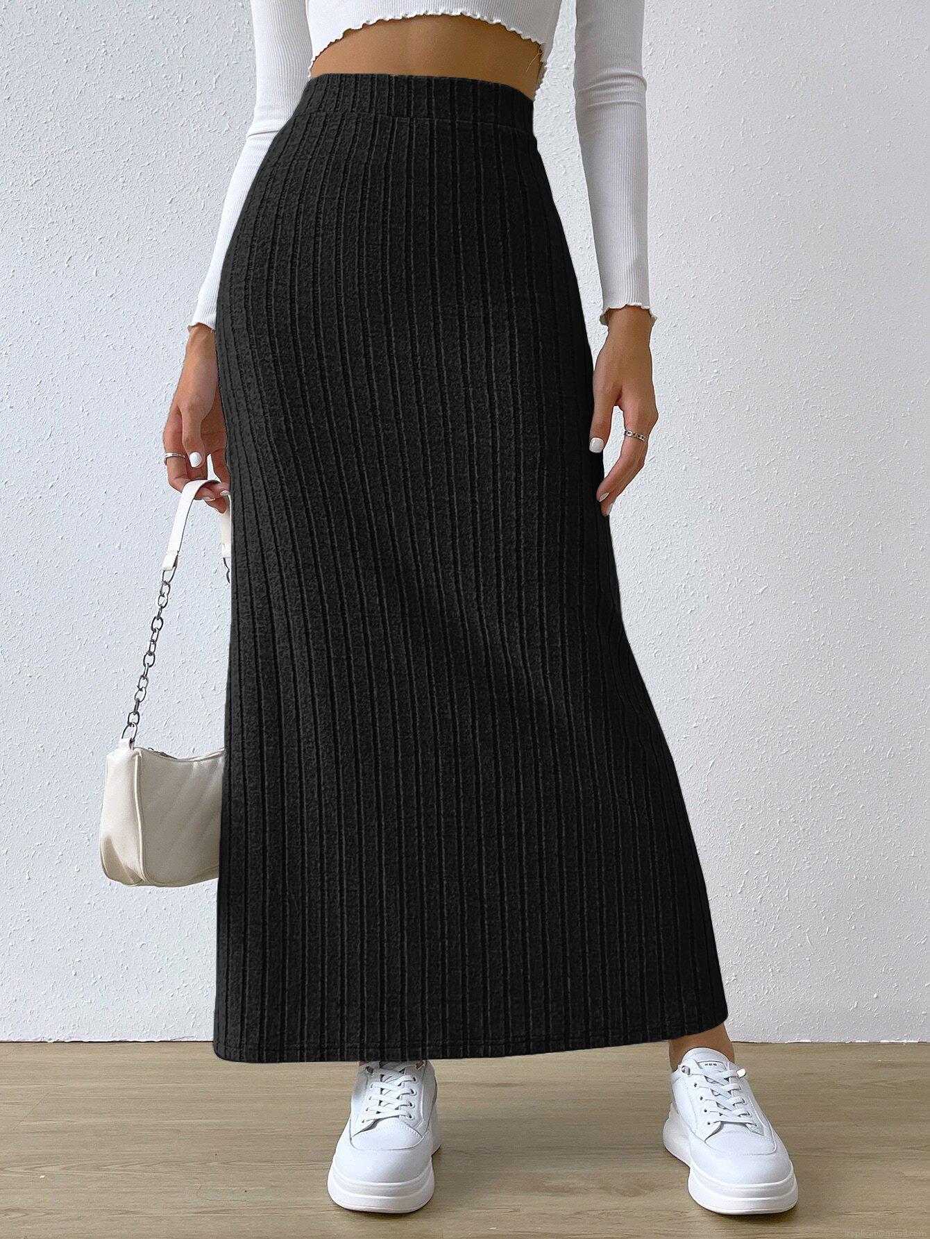 • Women's High Waist Ribbed Knit Maxi Skirt Minimalist Solid Color Side Slit Slim Fit Pencil Long Skirt Polyester Spandex Casual Bottoms