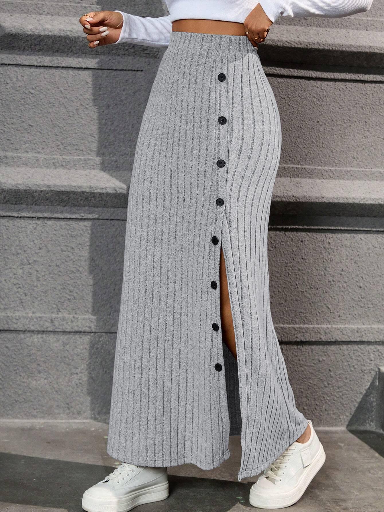 • Women's High Waist Ribbed Knit Maxi Skirt With Side Buttons Slit Hem Sexy Bodycon Commuter Pencil Skirt For Women Casual Office Wear