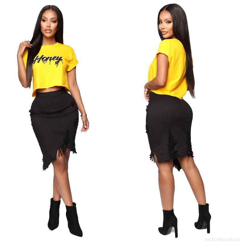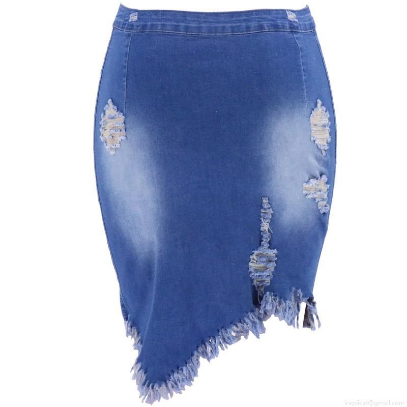 Women's High Waist Ripped Denim Skirt Asymmetric Distressed Fringed Tassel Bodycon Jean Skirt Streetwear Summer Casual Bottoms for Women