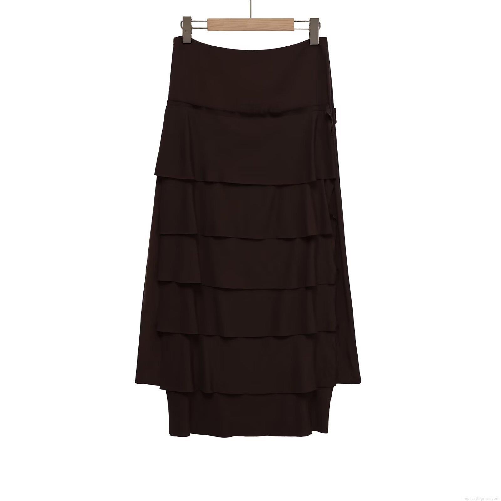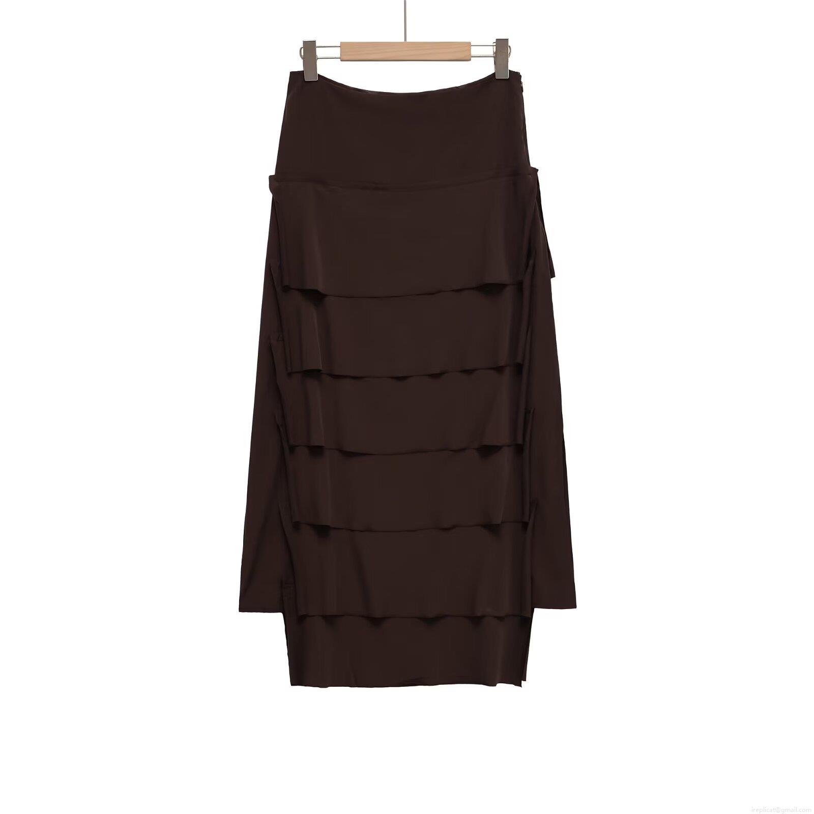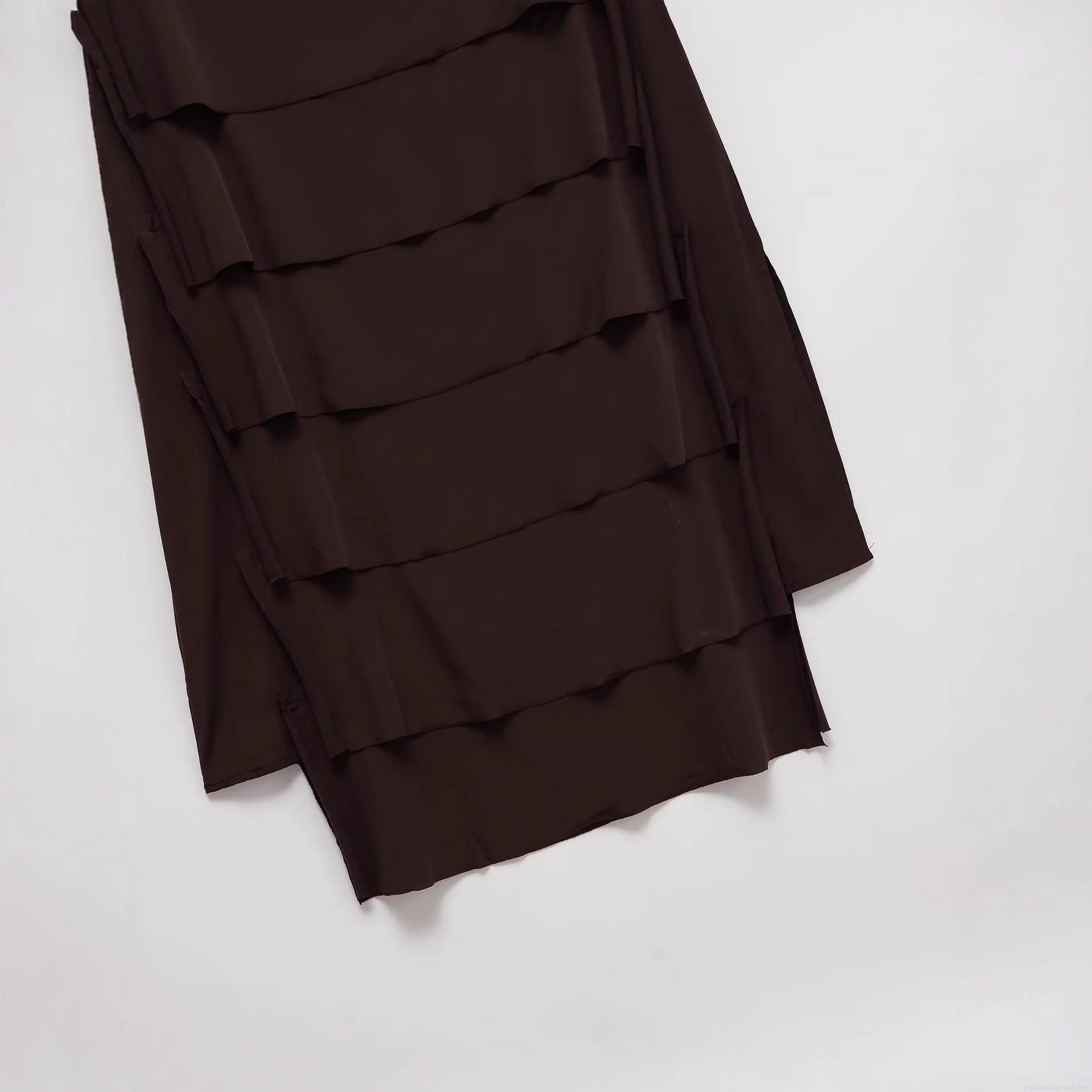 • Women's High Waist Tiered Skirt Elegant Polyester Solid Color Layered Cake Long Skirt Casual Street Style Brown Midi Skirt