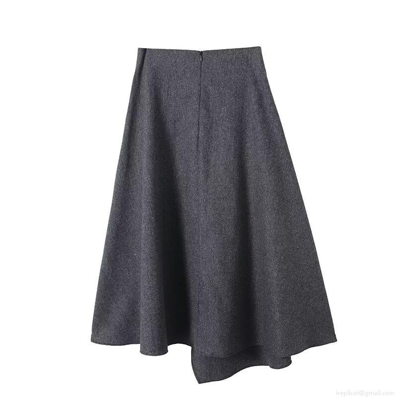 • Women's High Waist Woolen Blend A-Line Pleated Skirt Elegant Mid-Length Solid Color Thickened Winter Umbrella Skirt For Ladies Office Daily Wear