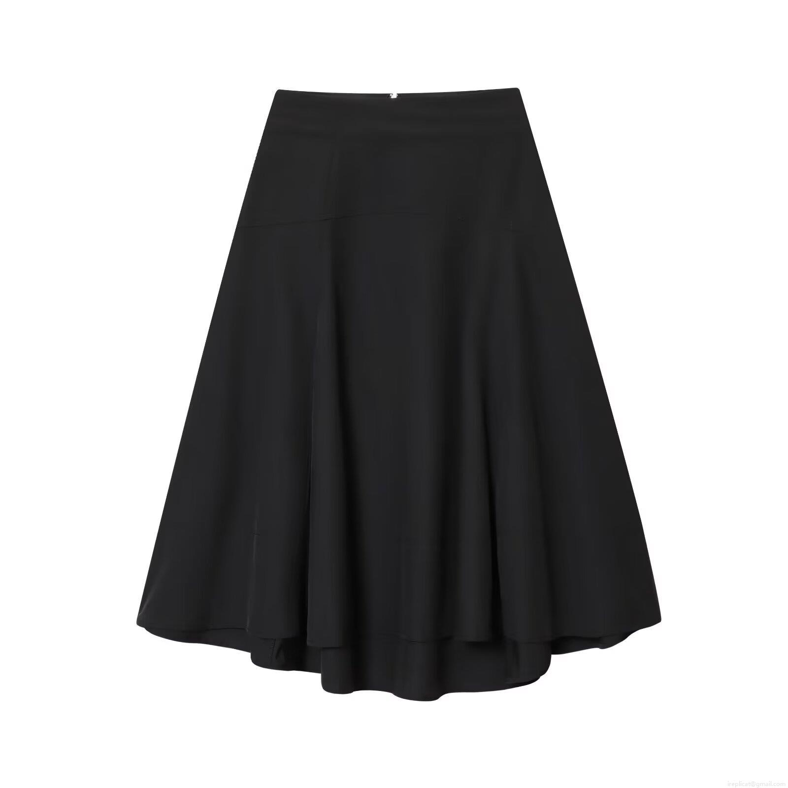 Solid Color, High-waisted, Metal Zipper, Full Skirt, Splicing Exposed Lines