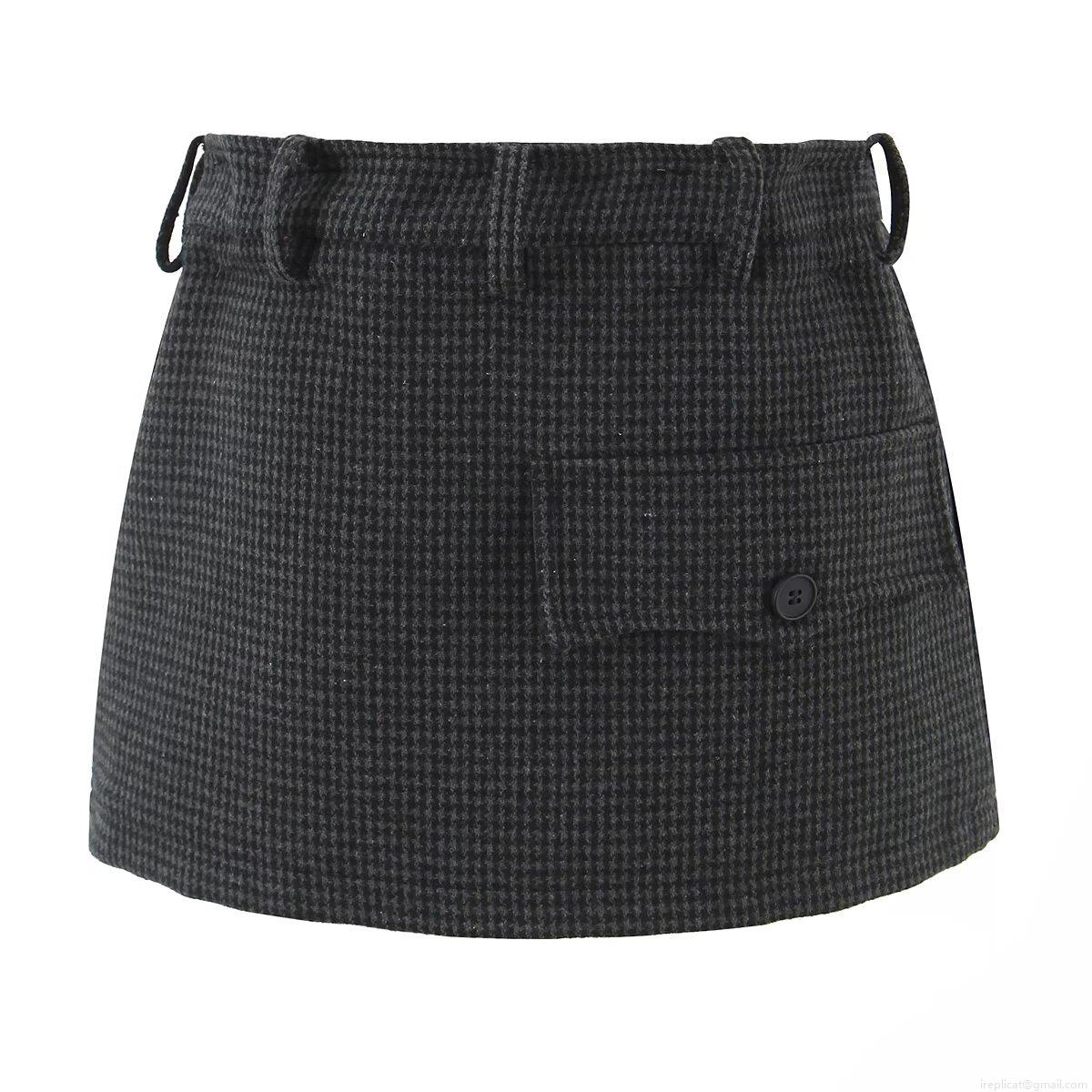 • Women's Houndstooth A-Line Mini Skirt High Waist Grey Woolen Texture Plaid Skirt with Buttons Autumn Winter Retro Academy Style Streetwear Skirt