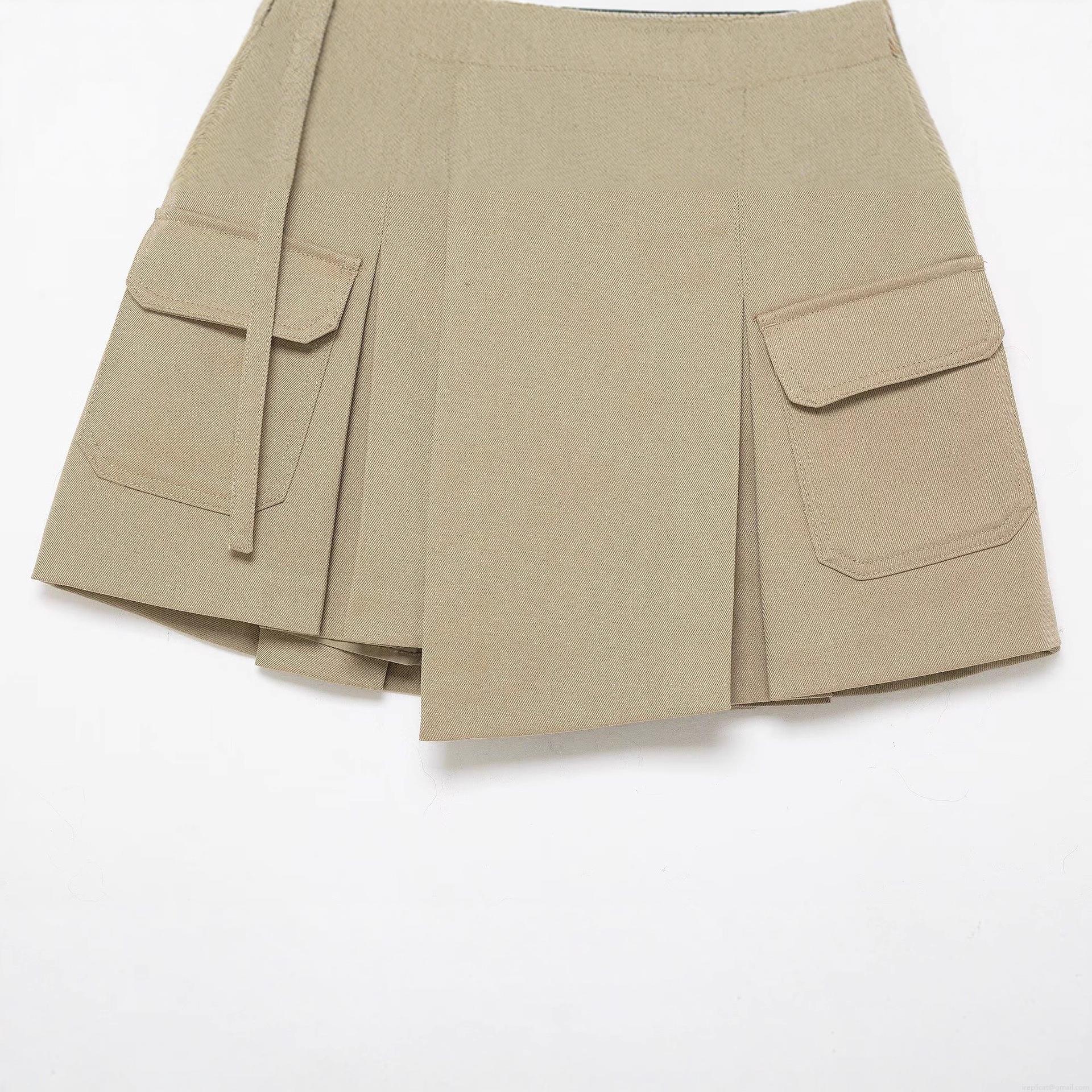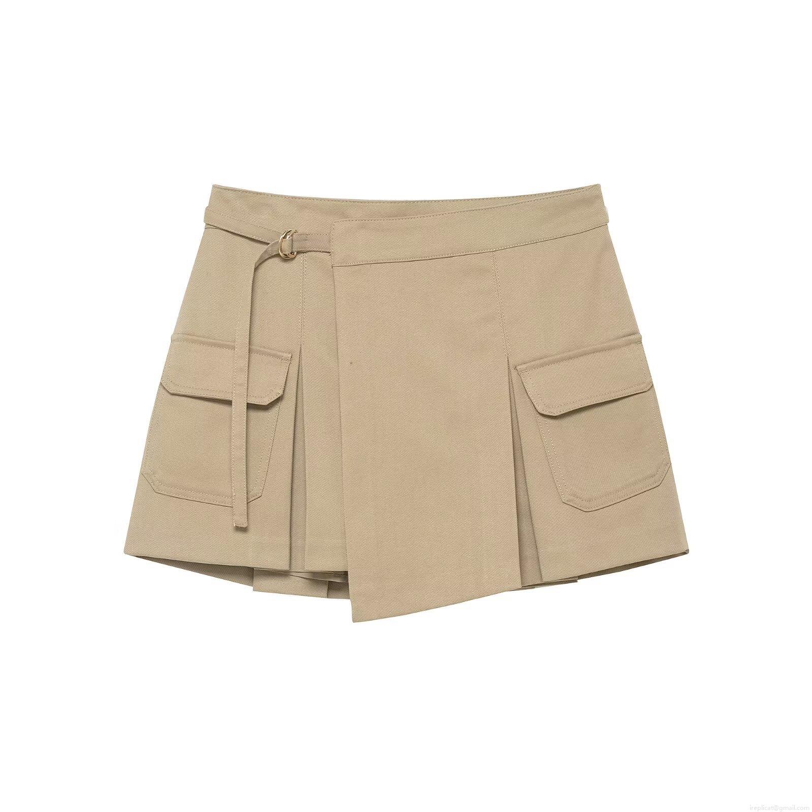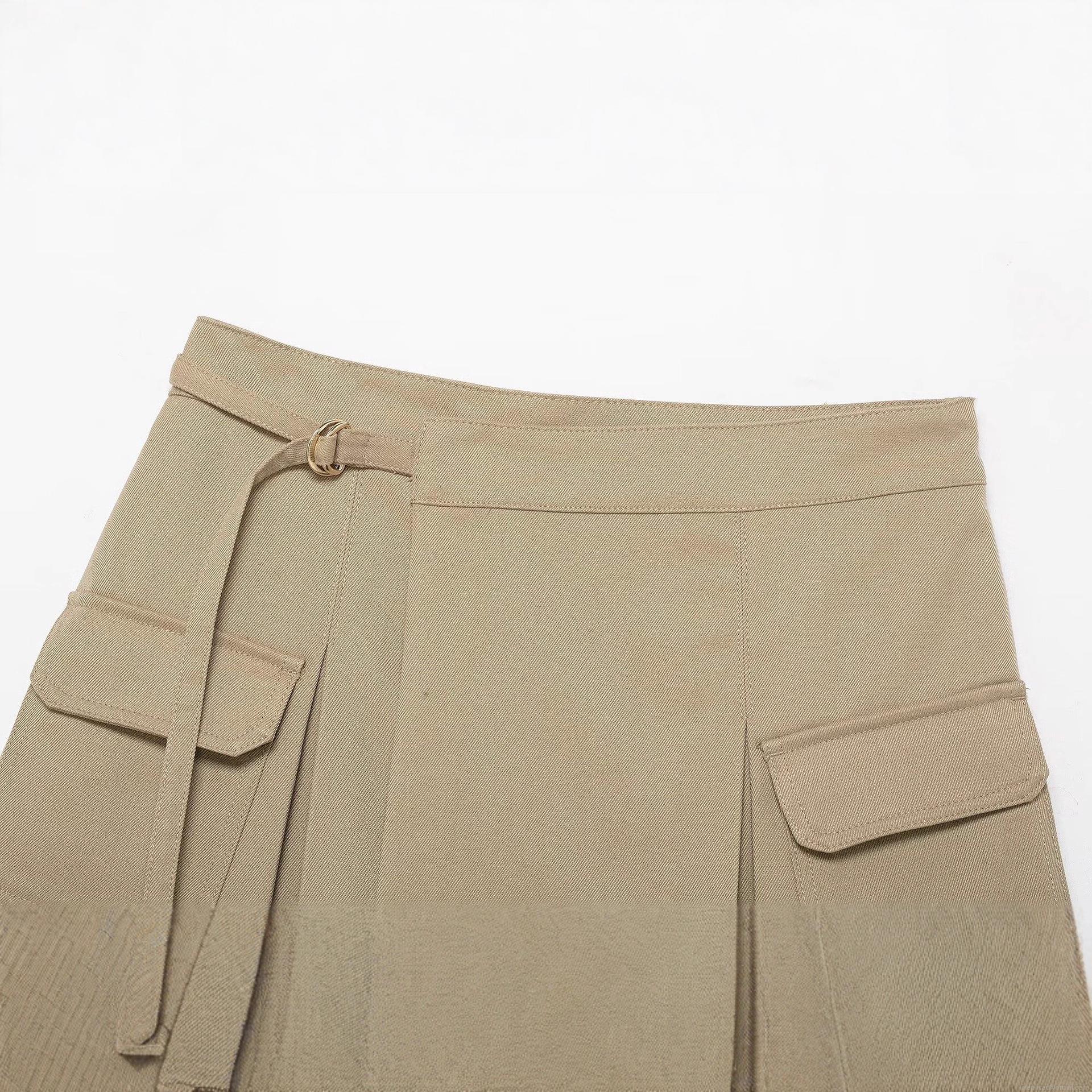 • Women's Khaki Cargo Mini Skirt Wrap High Waist A-Line Skirt With Large Pockets And Metal Buckle Belt Asymmetric Streetwear Casual Short Skirt