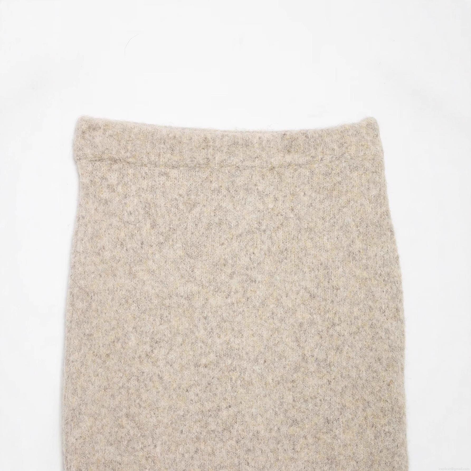 • Women's Knit Midi Skirt Oatmeal Polyester Splicing Mid-Length A-Line Straight Skirt For Autumn Winter Streetwear Elegant Bottoms