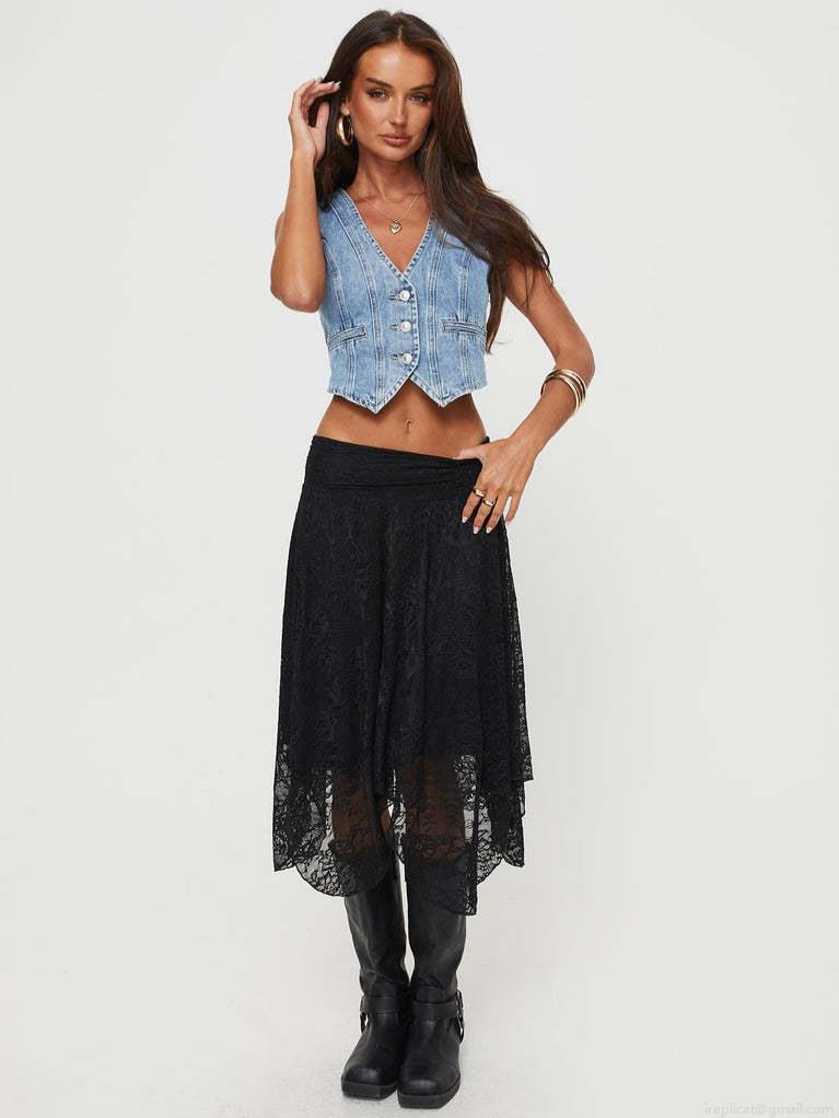 Women's Lace Midi Skirt Irregular Asymmetric Hem High Waist Polyester Spandex Patchwork Skirt For Daily Party Vacation Boho Street Style