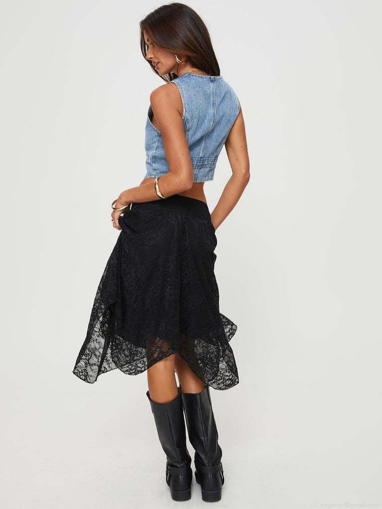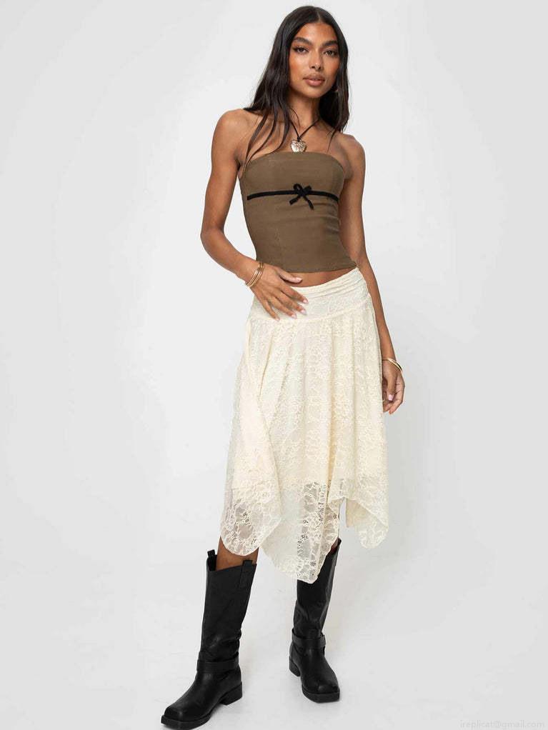 • Women's Lace Midi Skirt Irregular Asymmetric Hem High Waist Polyester Spandex Patchwork Skirt For Daily Party Vacation Boho Street Style