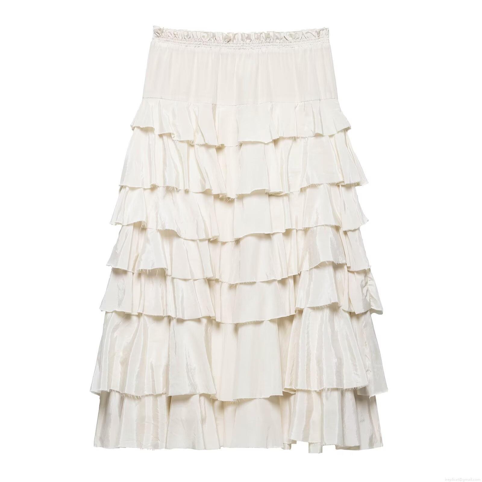 Solid Color, Ruffles, Cake Skirt, Multi-layered Pleats