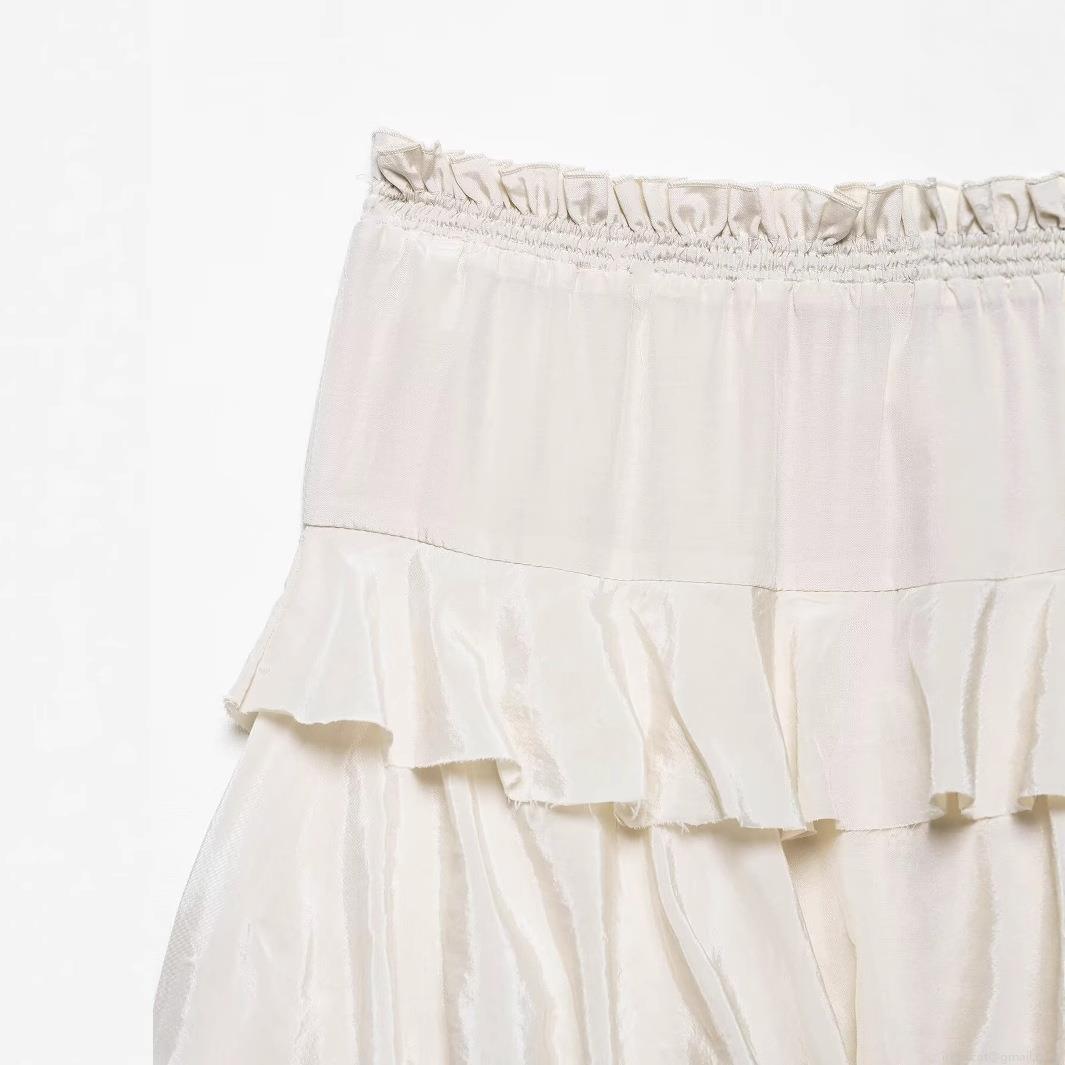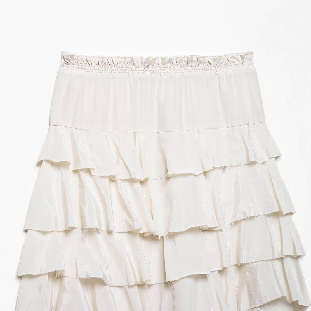 • Women's Layered Ruffle Maxi Skirt Elegant Polyester Satin-Like Tiered Cake Skirt High Waist Elastic Waistline Solid Color Creamy White Long Skirt For Party Streetwear Sexy Chic Style