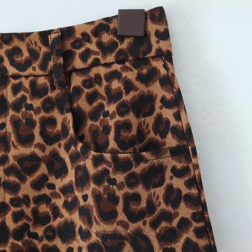 Splice, Leopard Print, Animal Print, High-waisted, Twill Texture, Single Buckle