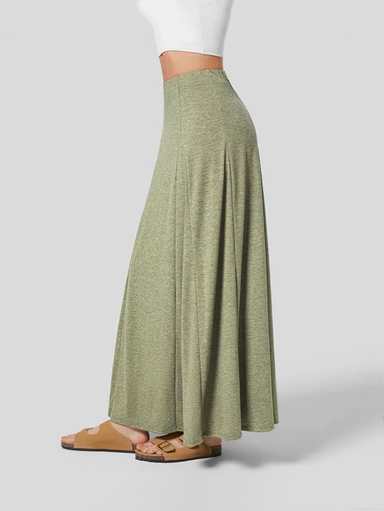 Women's Maxi Skirt High Waist A-Line Flowy Long Skirt Polyester Viscose Blend Knit Patchwork Solid Color Heathered Green Casual Skirt For Summer Beach Vacation