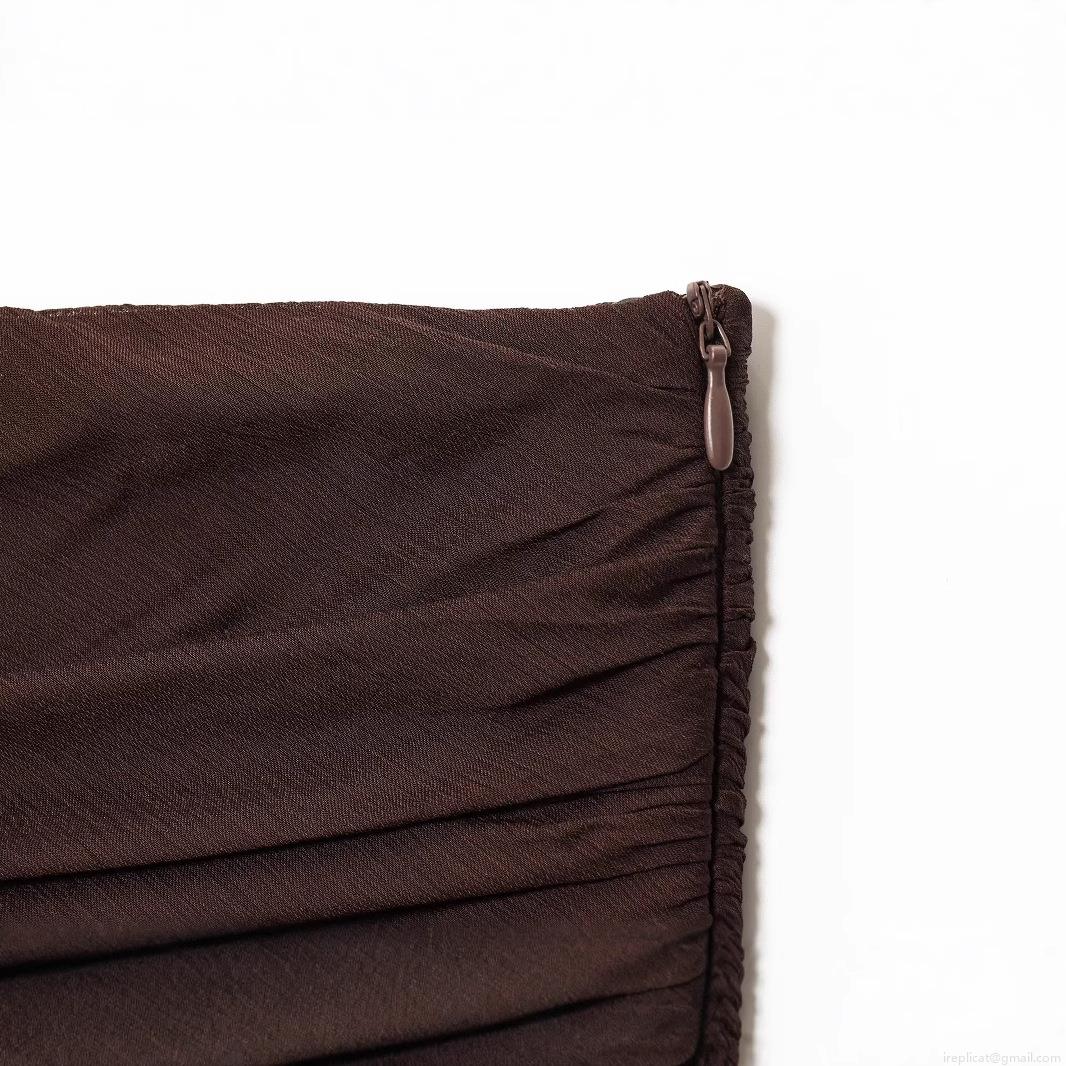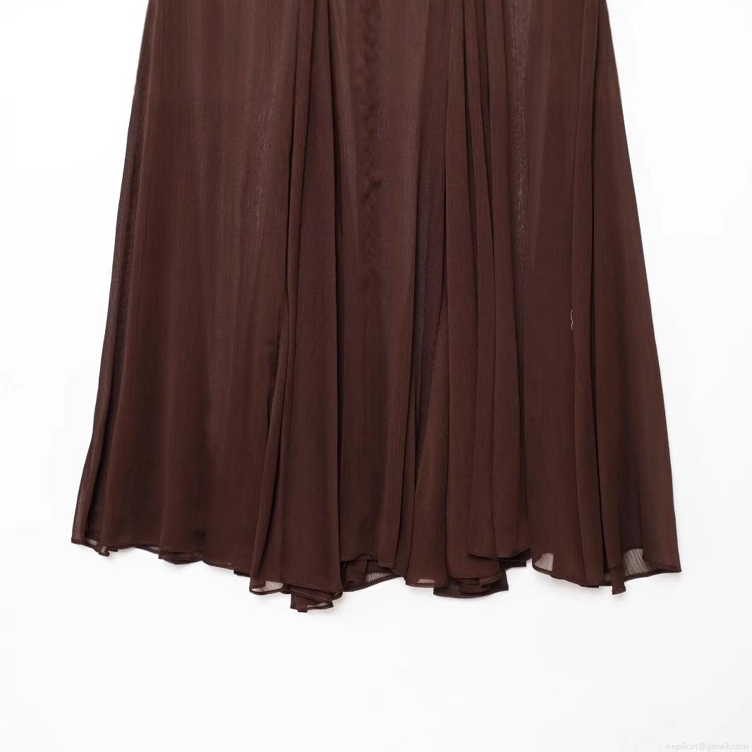 Women's Midi Skirt High Waist Ruched Chiffon Semi-Transparent Panel Design Solid Coffee Brown European Street Style Ladies Summer Fashion Long Skirt