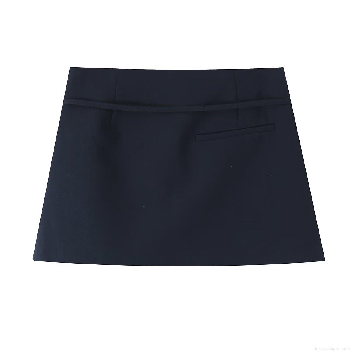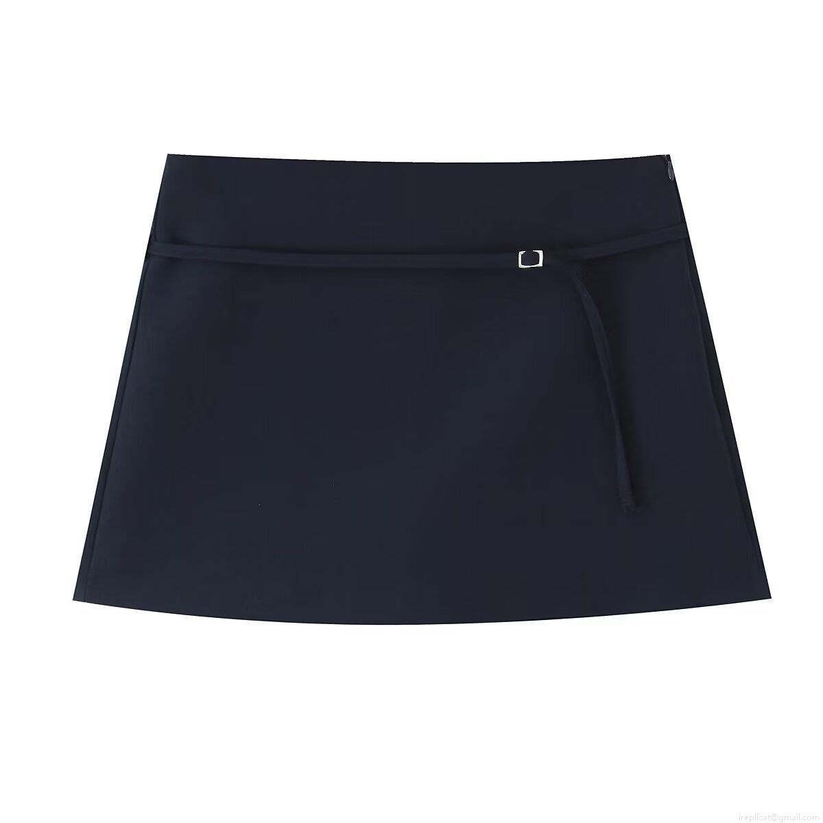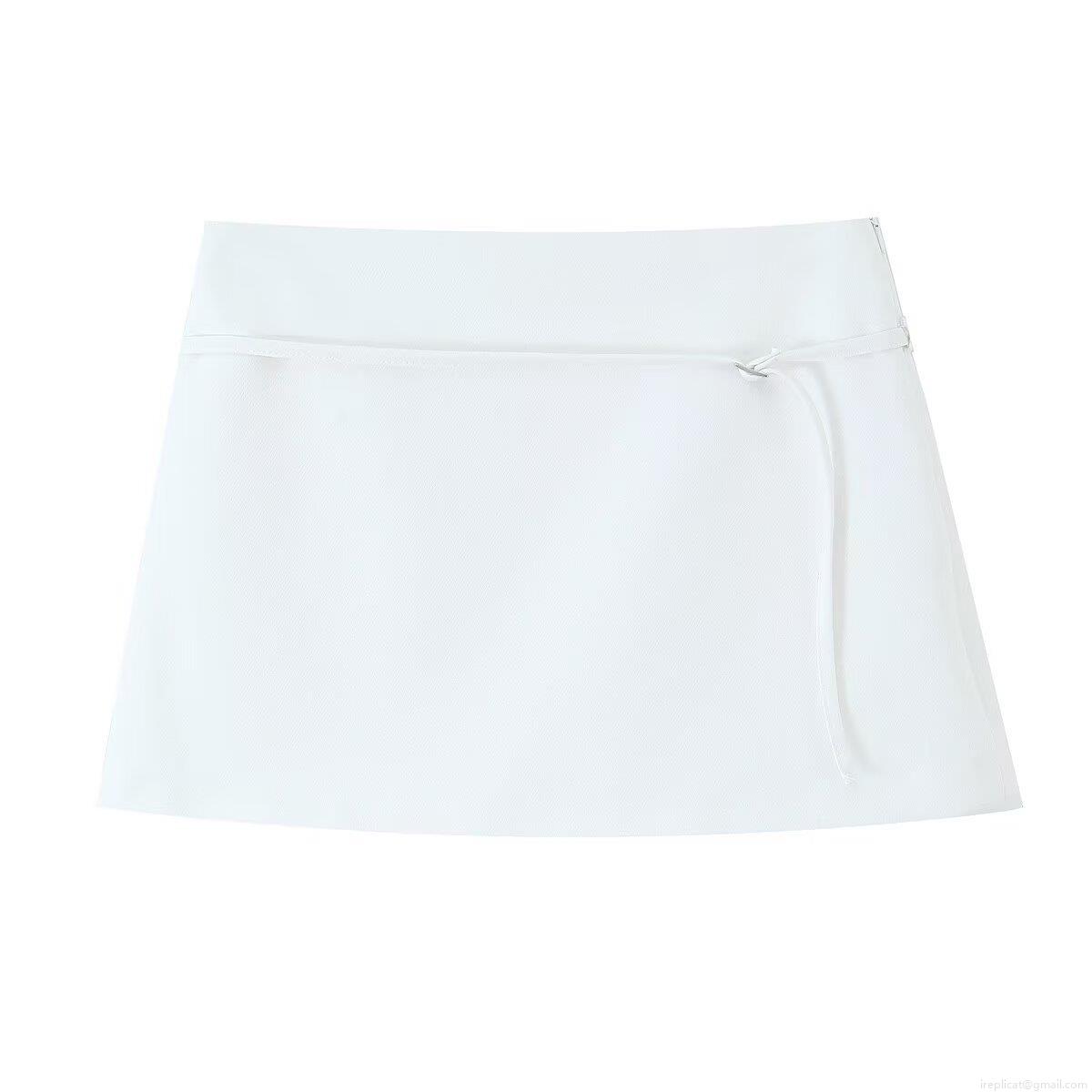 • Women's Minimalist European Style Solid Color Mini Skirt With Belt Mid Waist Polyester Blend Short Skirts For Street Daily Casual Wear