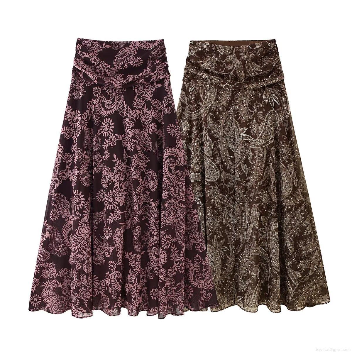 • Women's Paisley Print Maxi Skirt Bohemian High Waist Pleated A-Line Chiffon Skirt Retro Streetwear Flowy Summer Vacation Party Elegant Polyester Apparel