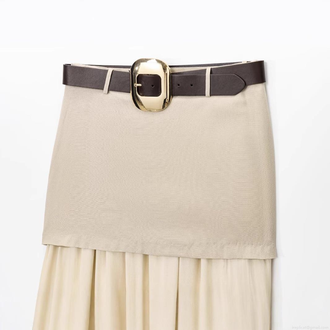 Women's Patchwork Midi Skirt With Brown Faux Leather Belt High Waist Apricot Polyester Bodycon Skirt For Casual Daily Streetwear Style