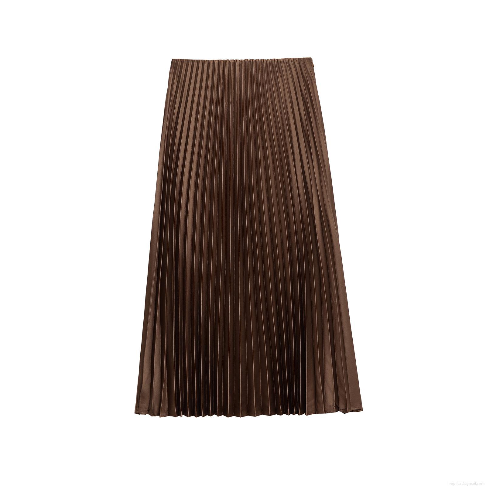 • Women's Pleated Midi Skirt High Waist Satin Texture A-Line Flowy Long Skirt Elegant Solid Color Polyester Bottoms for Ladies Party Daily Wear