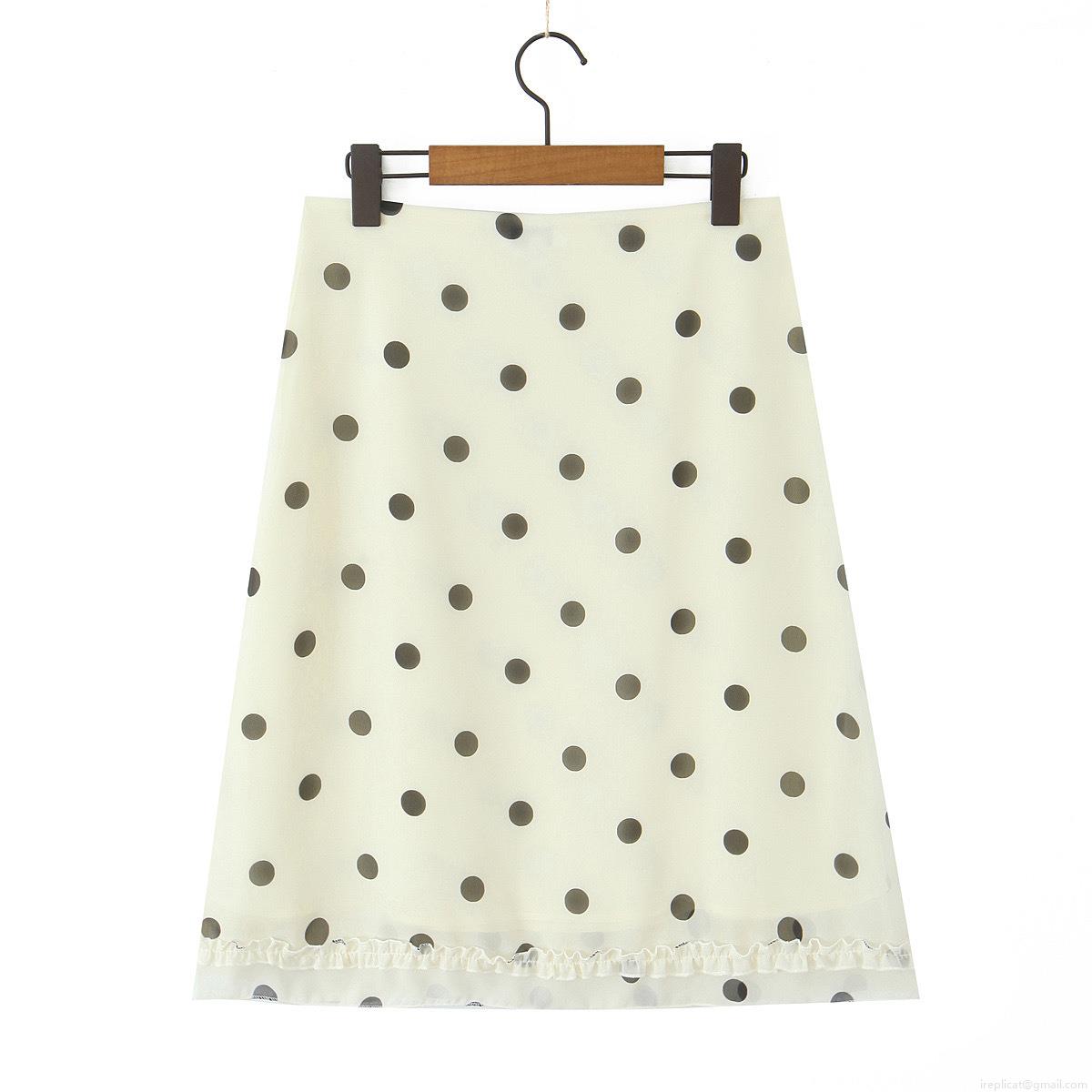 • Women's Polka Dot Midi Skirt High Waisted A-Line Skirt With Ruffle Hem 100% Polyester Vintage Streetwear Style For Summer Spring Ladies Casual Fashion