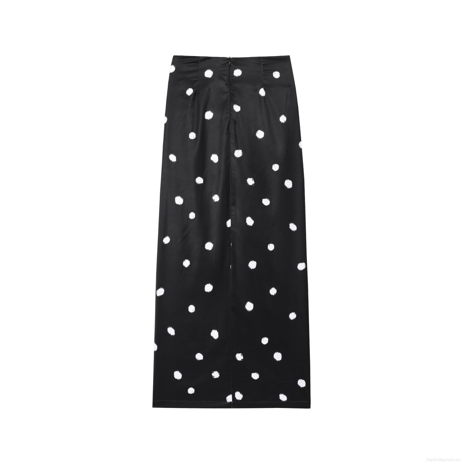 • Women's Polka Dot Satin Midi Skirt Vintage Twist Knot Front High Waist Slit A-Line Elegant Summer Streetwear Skirt