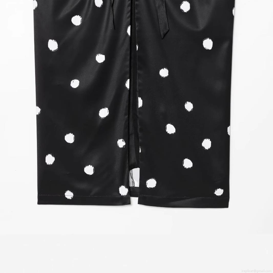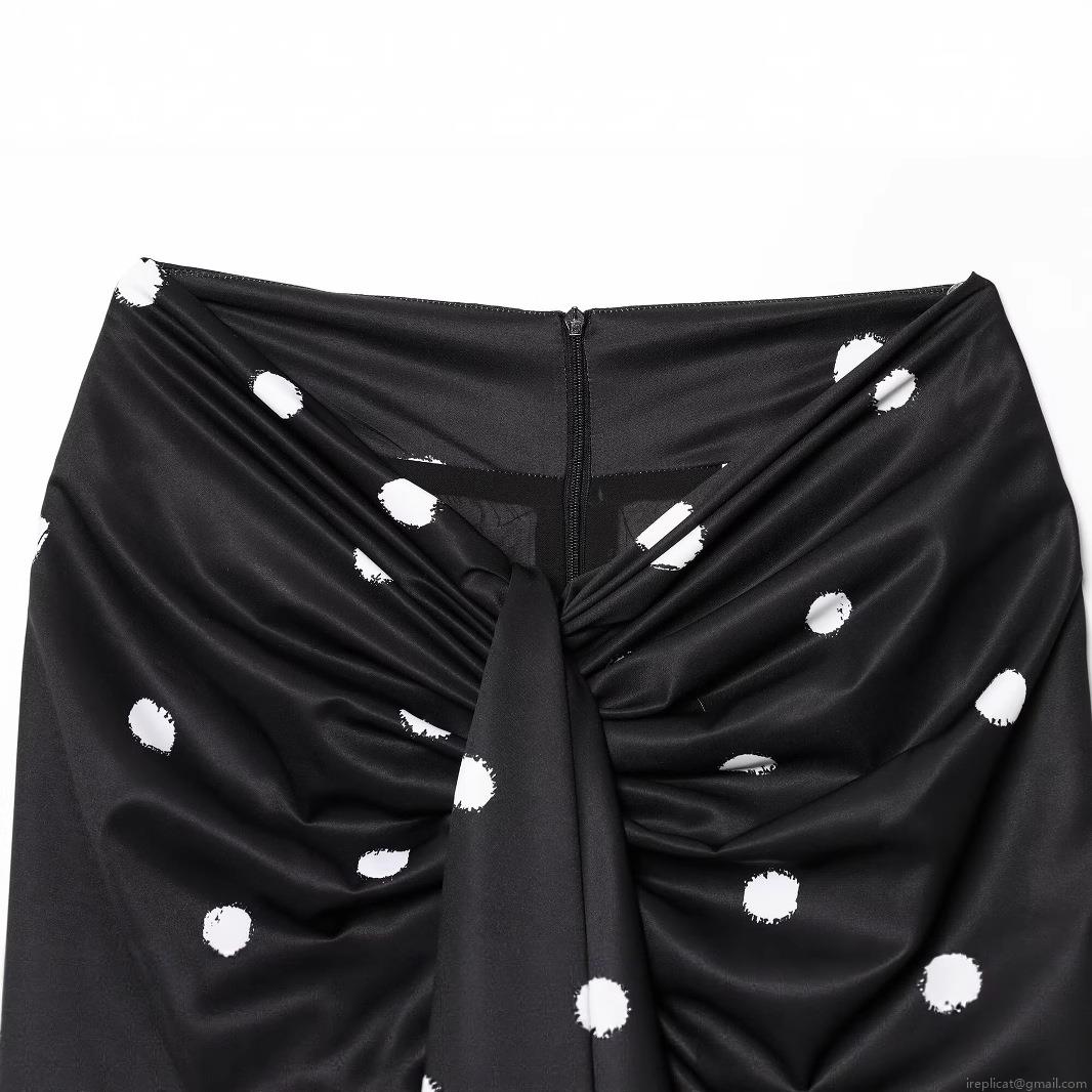 Women's Polka Dot Satin Midi Skirt Vintage Twist Knot Front High Waist Slit A-Line Elegant Summer Streetwear Skirt
