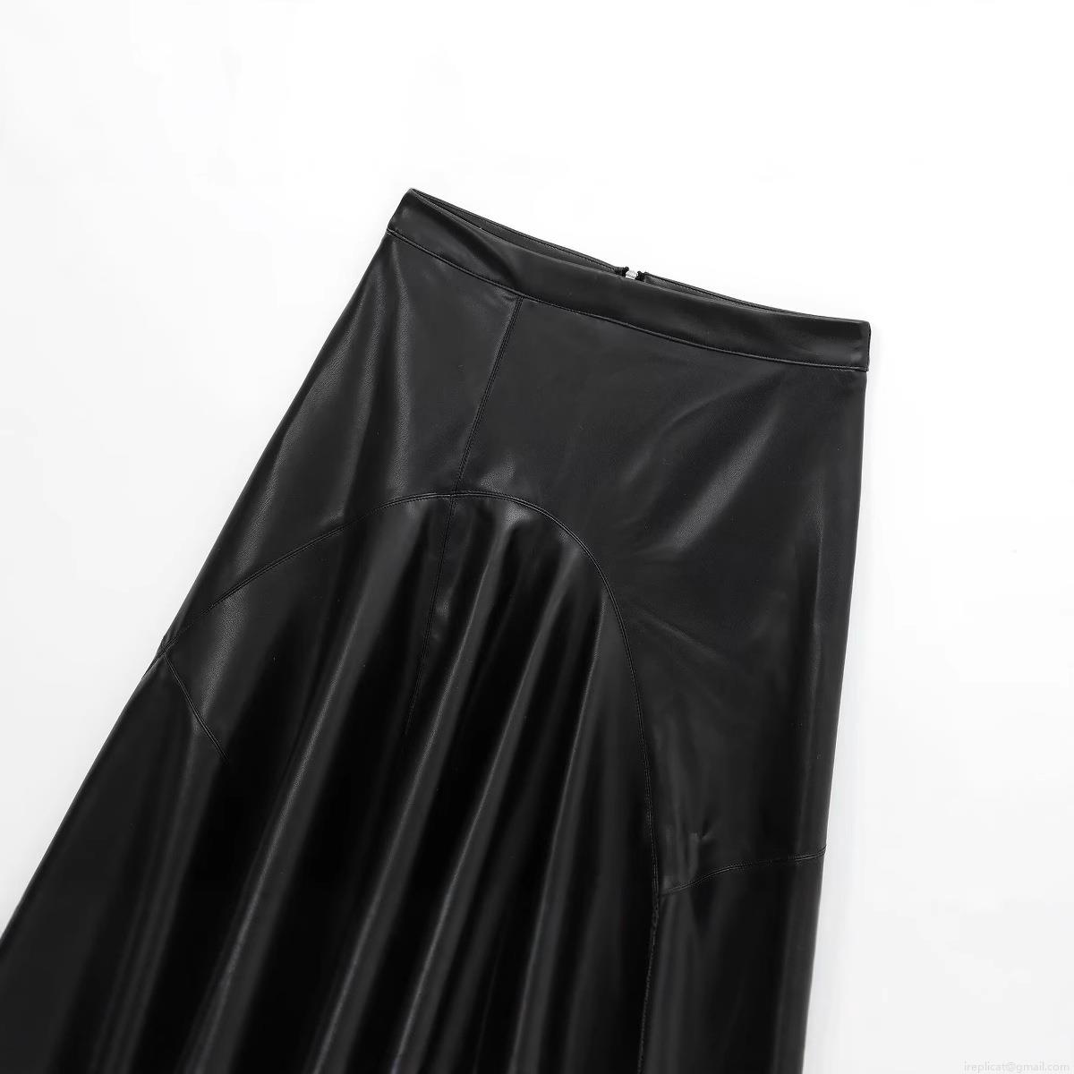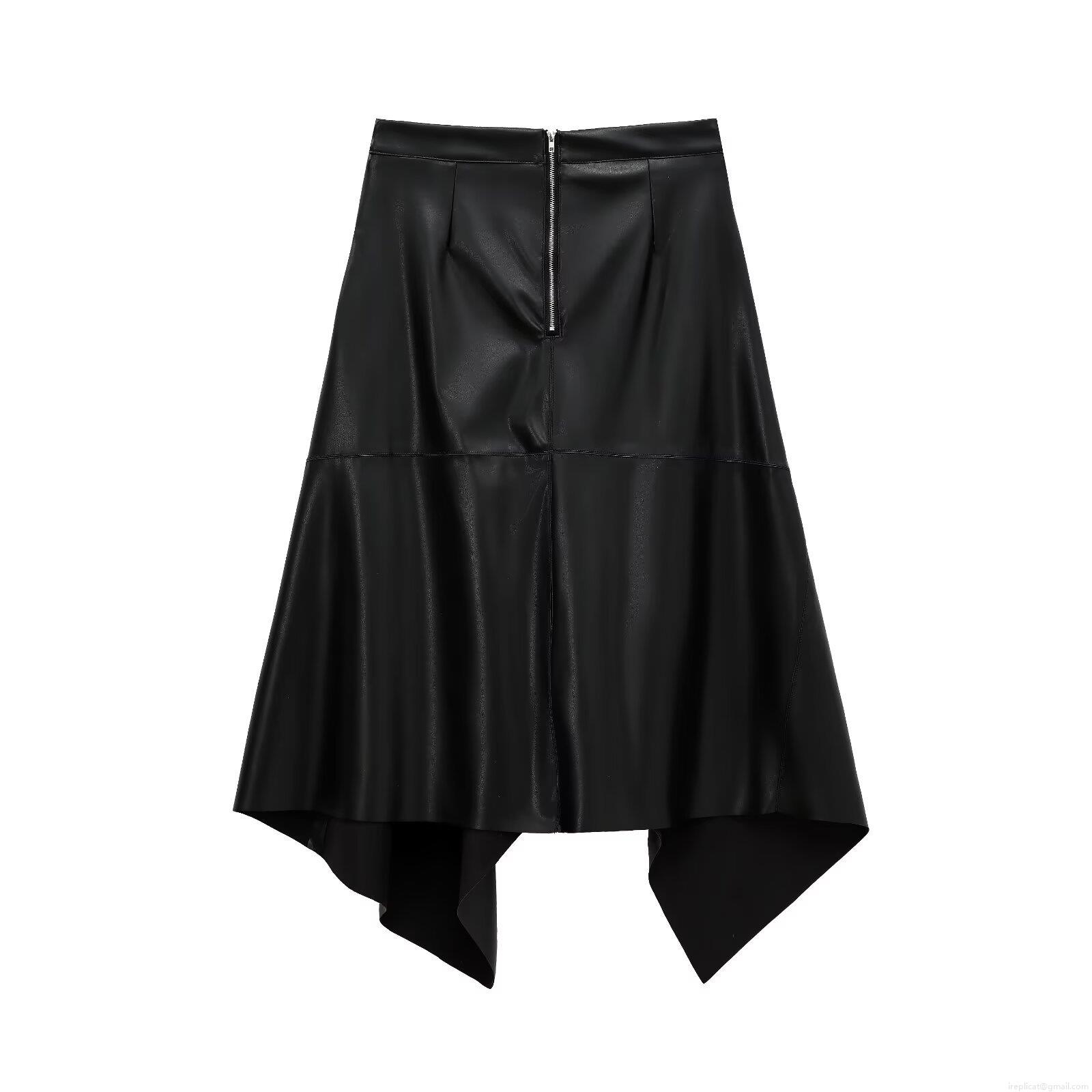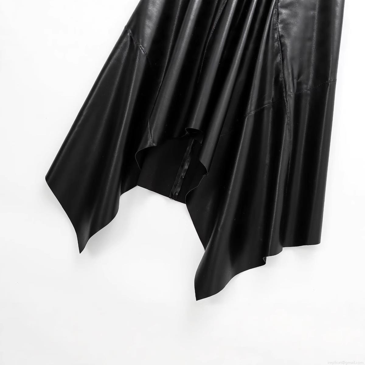 • Women's PU Leather Midi Skirt Sexy Asymmetric Hem High Waist Bodycon Skirt With Side Tie Lychee Grain Synthetic Leather Streetwear Skirt For Club Party