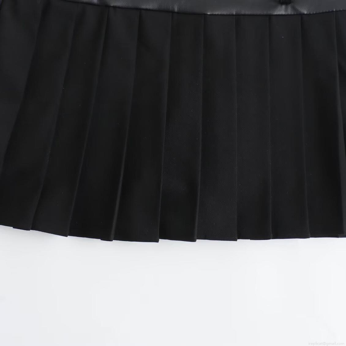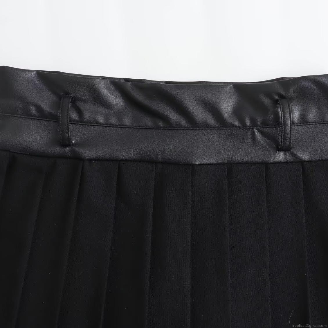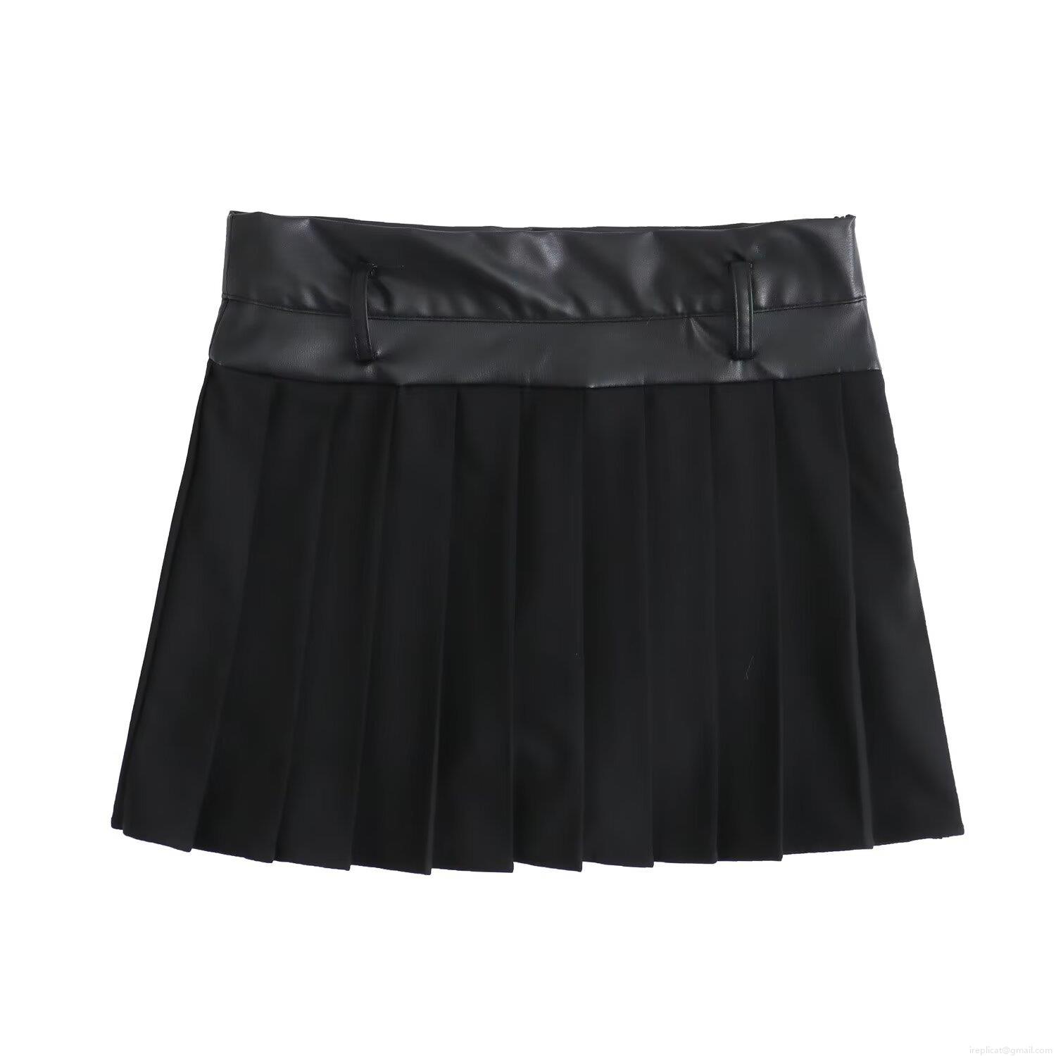 • Women's PU Leather Patchwork Pleated Mini Skirt High Waist Fashionable Casual A-Line Skort With Built-in Safety Shorts For Autumn Daily Streetwear Outfits