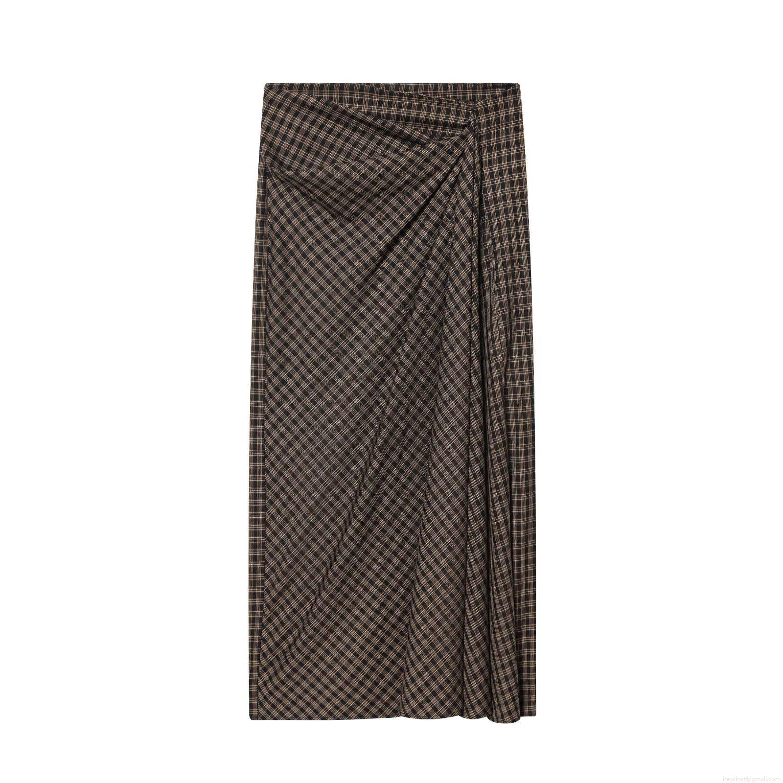 • Women's Retro Plaid Midi Skirt Ruched Side High Waist Polyester Checkered Straight Pencil Skirt For Women Streetwear Daily Wear Classic Brown Black Skirt