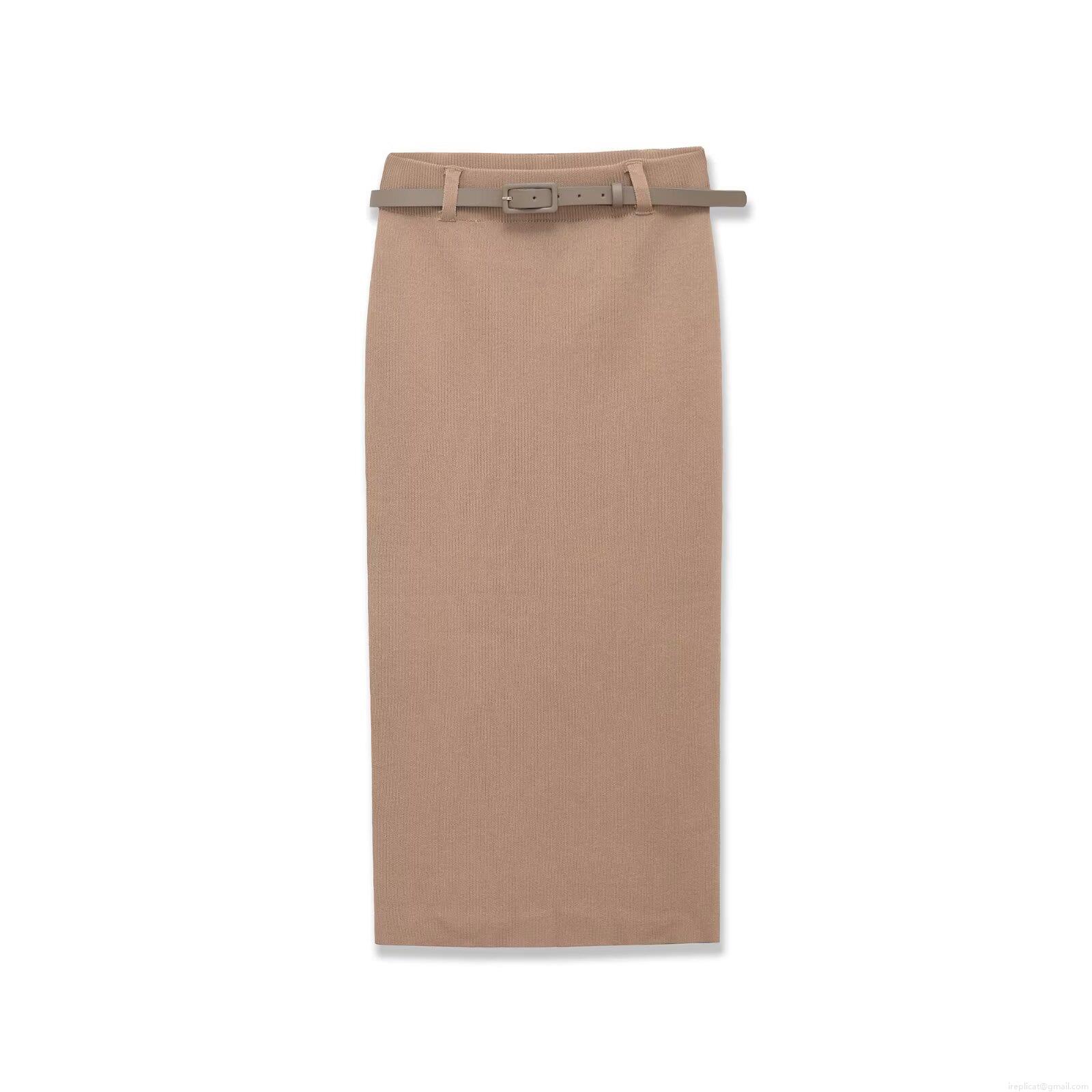 • Women's Ribbed Knit Midi Skirt With Belt Elegant High Waist Straight Pencil Skirt Streetwear Solid Color Back Slit Bodycon Skirt For Women