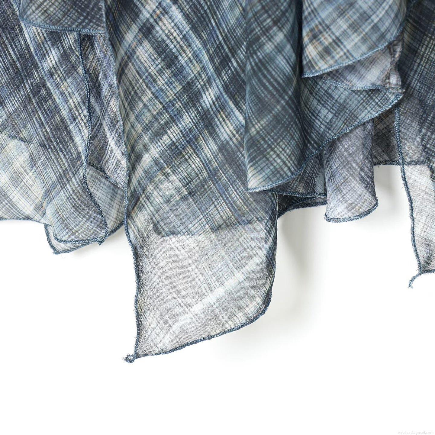 • Women's Romantic Blue Grey Plaid Layered Ruffle Skirt Irregular Hem High Waist Polyester Chiffon Midi Skirt For Daily Dating Elegant Ladies Skirt