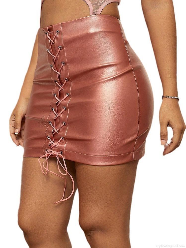 • Women's Rose Gold PU Leather Mini Skirt Sexy Lace-up Bodycon Short Skirt Metallic High Waist Club Party Nightclub Wear Streetwear Skirts