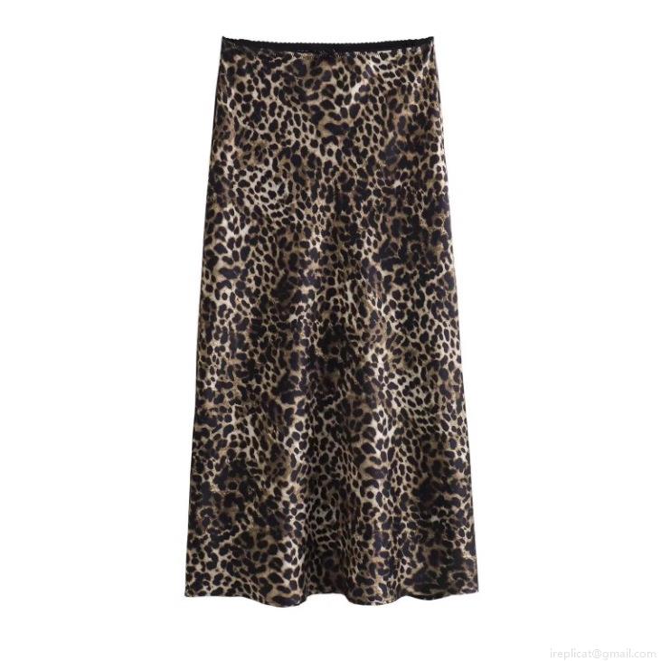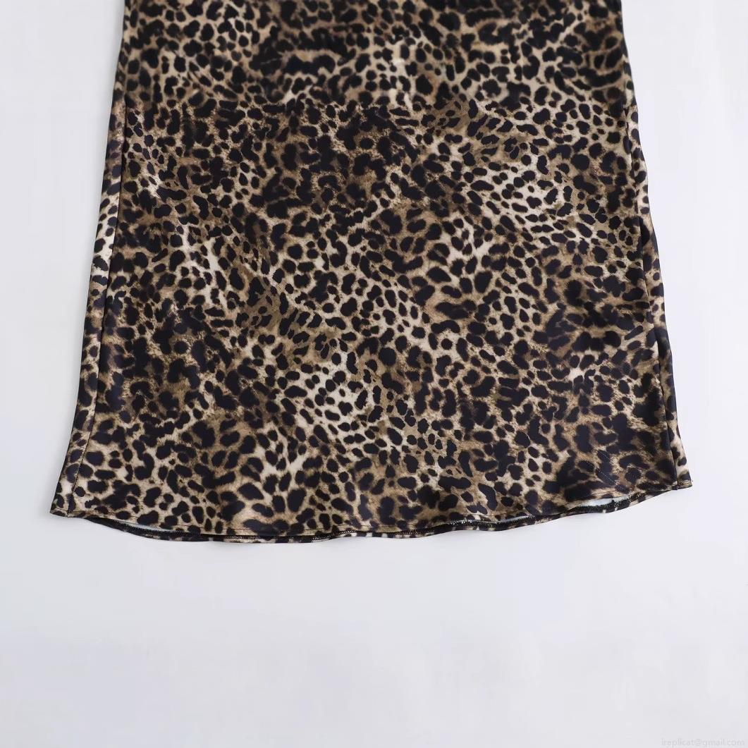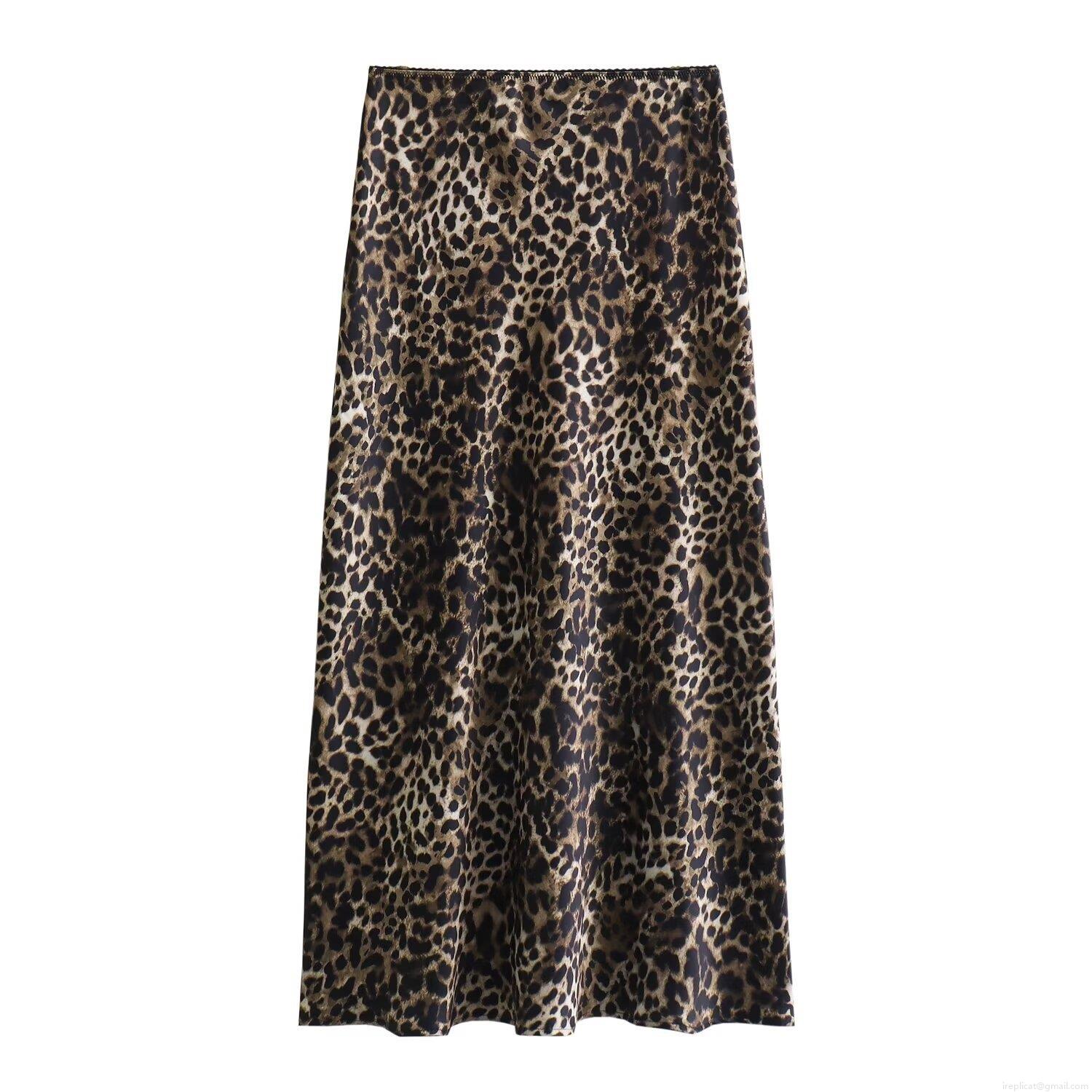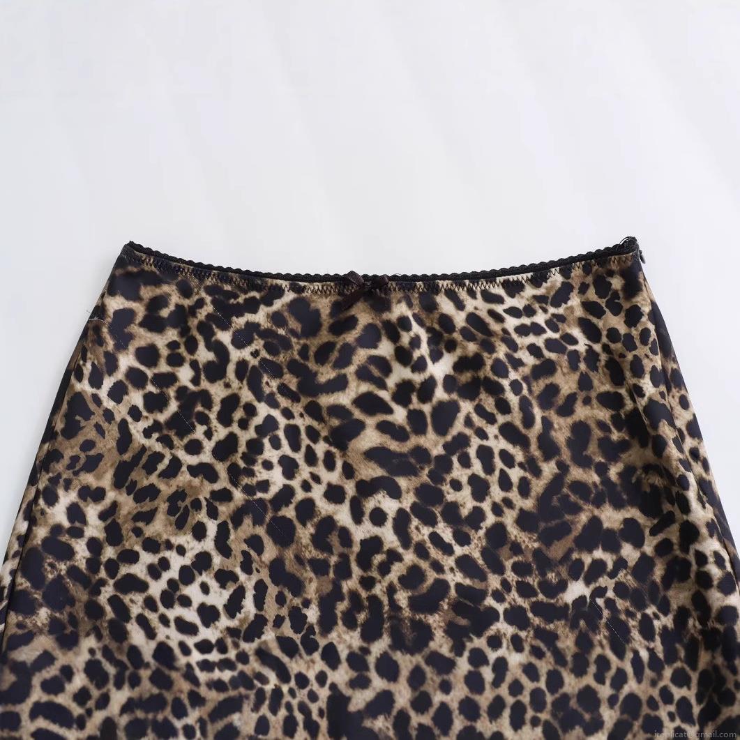 Women's Satin Leopard Print Midi Skirt Sexy High Waist A-Line Skirt With Lace Trim Bow Detail Elegant Casual Party Bottoms