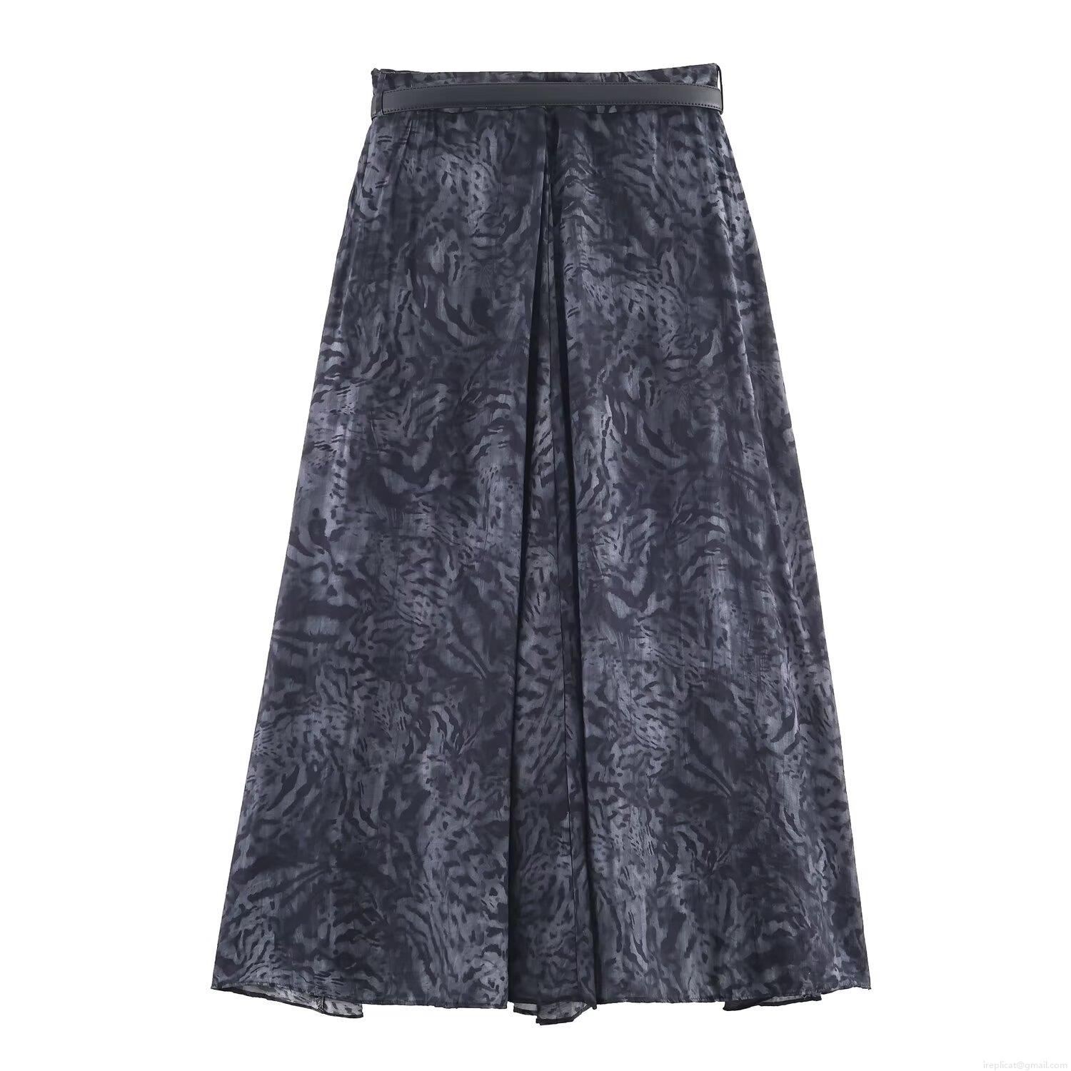 Women's Sexy Animal Print Midi Skirt With Leather Belt Elegant Grey Black Tiger Pattern Polyester Straight Skirt For Party Club Streetwear Bottoms