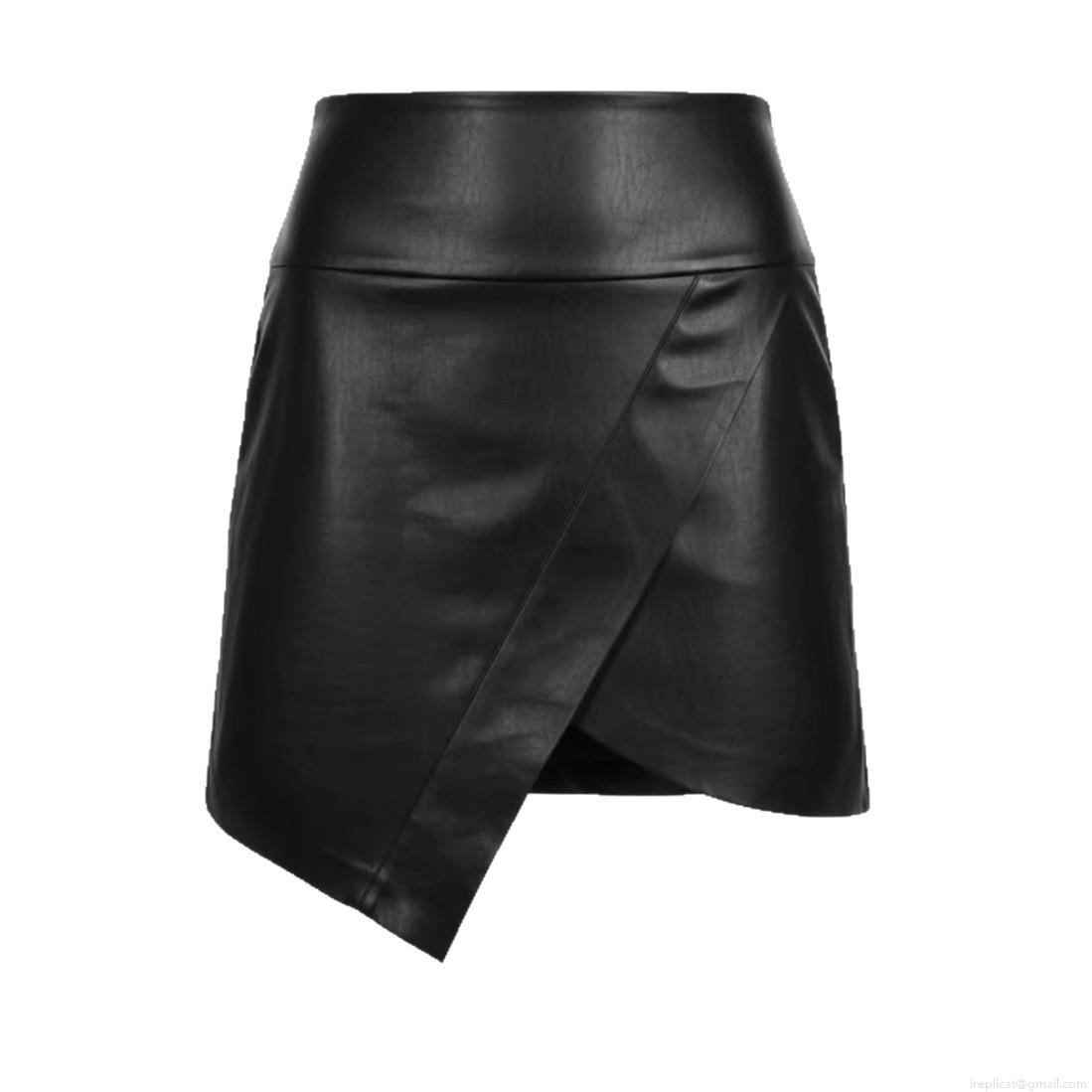 • Women's Sexy Black PU Leather Mini Skirt High Waist Irregular Wrap Design Hip-Hugging Short Skirt For Party Club Streetwear Daily Casual Wear