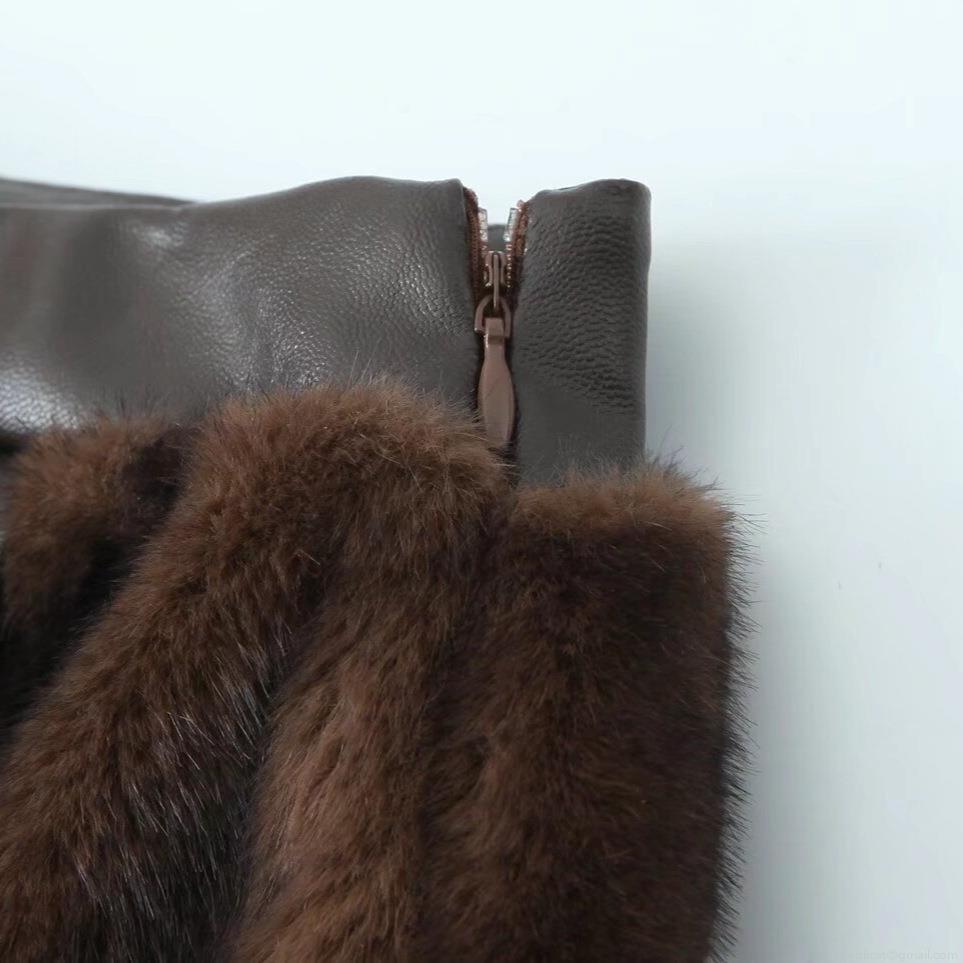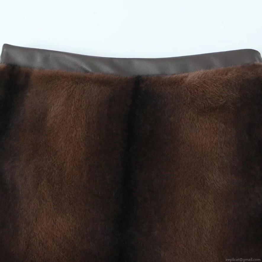 • Women's Sexy Brown Faux Fur Mini Skirt With Leather Patchwork Bodycon Hip Skirt For Streetwear Party Winter Autumn Slim Fit Short Skirt Fashion
