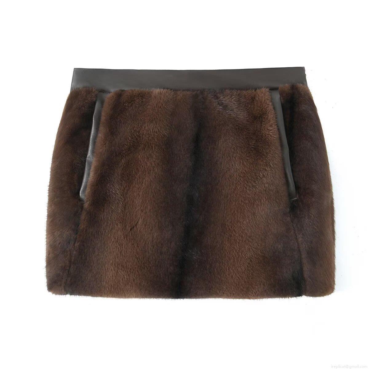 • Women's Sexy Chic Faux Fur Mini Skirt With PU Leather Trim Solid Color Deep Brown Short Skirt For Streetwear Party Daily Wear