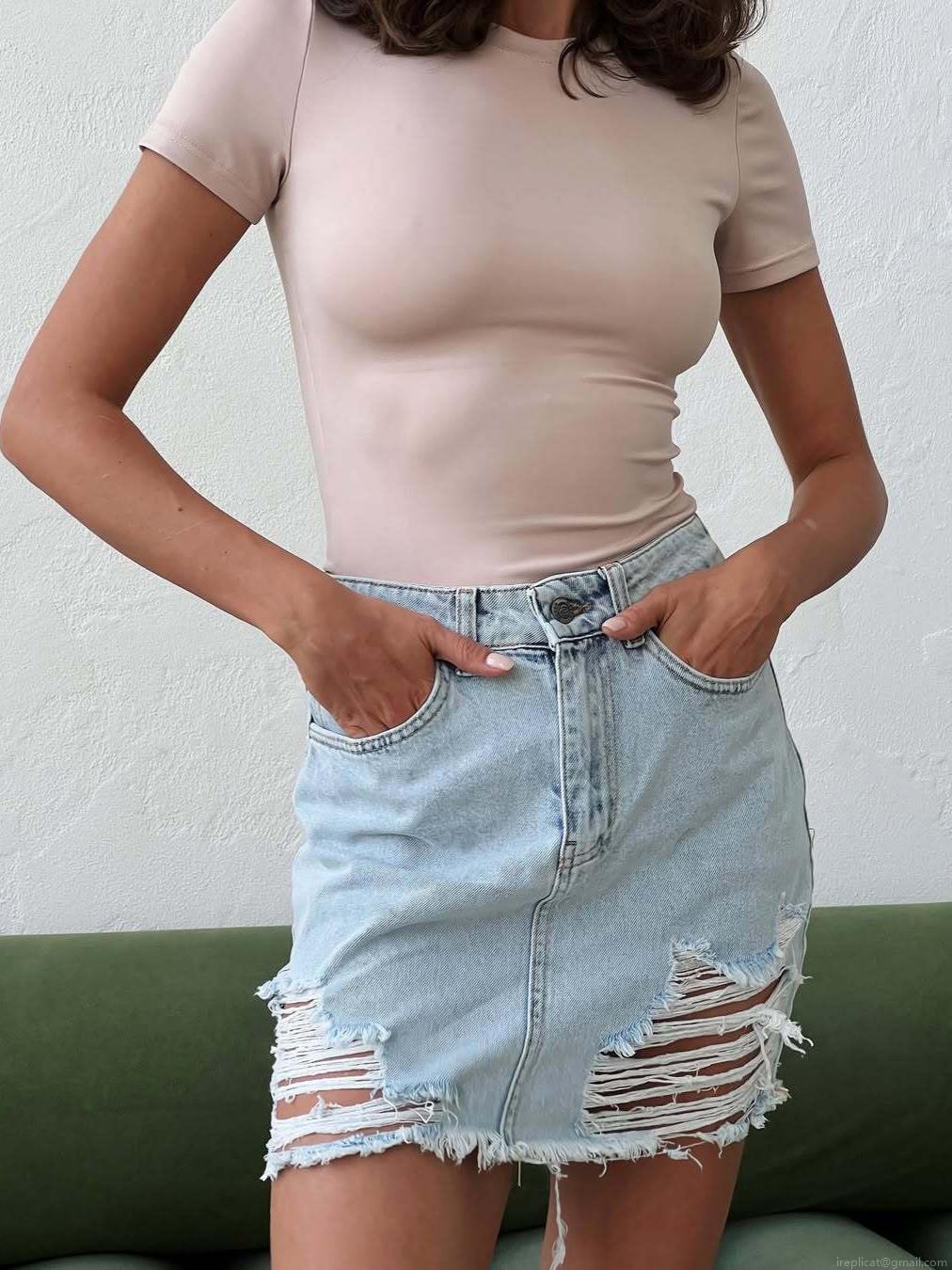 • Women's Sexy Denim Mini Skirt High Waisted Distressed Frayed Hem Washed Solid Color Retro Bodycon Hip Skirt Summer Streetwear