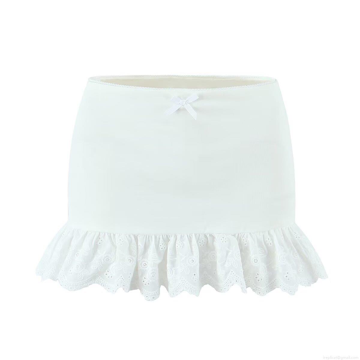 Women's Sexy High Waist Bodycon Mini Skirt With Lace Trim And Bow Accent Slim Fit Sweet Y2K Streetwear Clubwear Skirts For Ladies